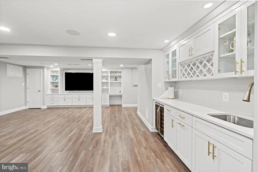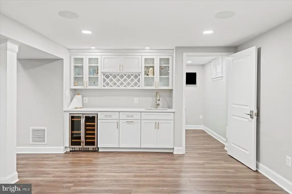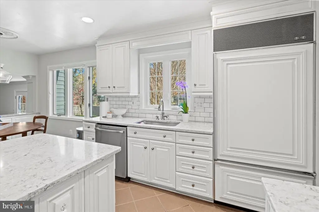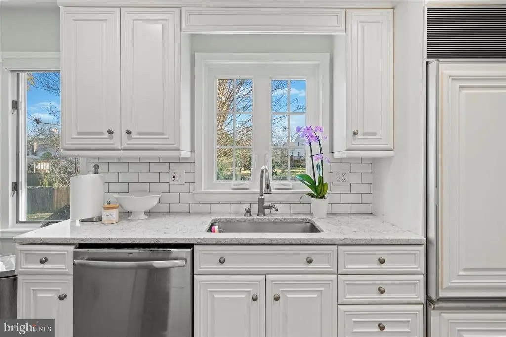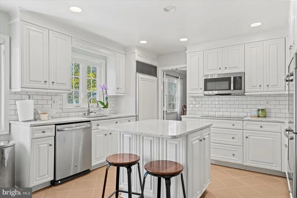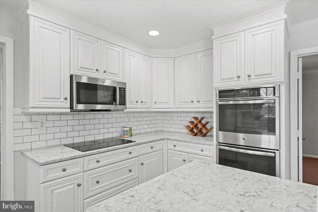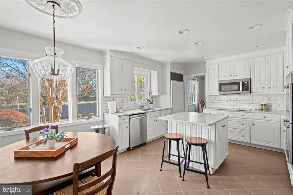 Welcome to 14833 Rocking Spring Drive — a beautifully updated split-level home in the sought-after Manor Lake community. This 5-bedroom, 2.5-bath home offers 3,348 sq. ft. of move-in-ready living on a spacious 0.26-acre lot with excellent curb appeal. Updates include newer vinyl siding, Azek trim, black exterior lighting, a 2022 exterior repaint, and 19 energy-efficient Simonton windows installed in 2020. A ProVia fiberglass French door opens to the large backyard, and the enclosed garage adds extra storage and secure parking. Inside, the heart of the home is the fully renovated 2019 gourmet kitchen featuring warm white cabinetry, Silestone quartz countertops, stainless steel GE appliances, and a brand-new 2025 stovetop and microwave. The kitchen flows into the family room for easy everyday living and entertaining. Upstairs are four generous bedrooms, including a beautifully remodeled primary suite with designer finishes, custom millwork, upgraded glass doors, and a private water closet. The fifth bedroom on the main level is ideal for guests, a home office, or a playroom. The expansive lower level—renovated in 2021—offers incredible bonus space with higher ceilings, updated electrical/plumbing, custom cabinetry, a full wet bar, an 85" Sony TV with surround sound, a gym area, luxury vinyl plank flooring, plantation shutters, and ample finished storage. Additional updates include a full interior repaint in 2025, a refreshed laundry room, and a 2023 Electrolux washer and dryer. The home is minutes to top-rated schools, parks, shopping, and Red Line Metro access, all in a peaceful and family-friendly neighborhood. Truly move-in-ready and loaded with upgrades—this one is a rare find in Manor Lake.