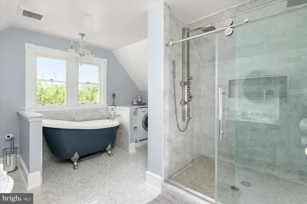 Built in 1898 on sought-after Oliver Street in Riverdale Park, this meticulously restored home combines timeless charm with modern upgrades. • Original Details: Preserved wood millwork, flooring, and wrap-around porches. • Chef’s Kitchen: LaCanche French range, Sub-Zero fridge, Fisher & Paykel dishwasher drawers, Bosch microwave drawer, nearly 10’ cabinets, and island seating for three. • Primary Suite Retreat: Built-in bookcase doors, walk-in closet, spa-like bath with slipper air tub, two-person marble shower, double vanity, heated floors, towel racks, and in-suite washer/dryer. • Lower Level Amenities: Heated polished concrete floors, secondary kitchen, mudroom, living room with 65” TV and surround sound, guest quarters, fitness room, powder room, wine cellar, and additional laundry. Smart & Efficient Features: Ceiling speakers, Pelican water filtration, UV air purifier, tankless water heater, geothermal heating/cooling, backup generator, and stormwater management system with pond. Outdoor Living: Freshly painted exterior, brick patio, garden plot, herb box, fruit trees, and off-street parking. Prime Location: Steps from Riversdale Mansion, MARC station, farmers market, Whole Foods, restaurants, and more. This historic gem offers a rare blend of elegance and luxury. Schedule your tour today!