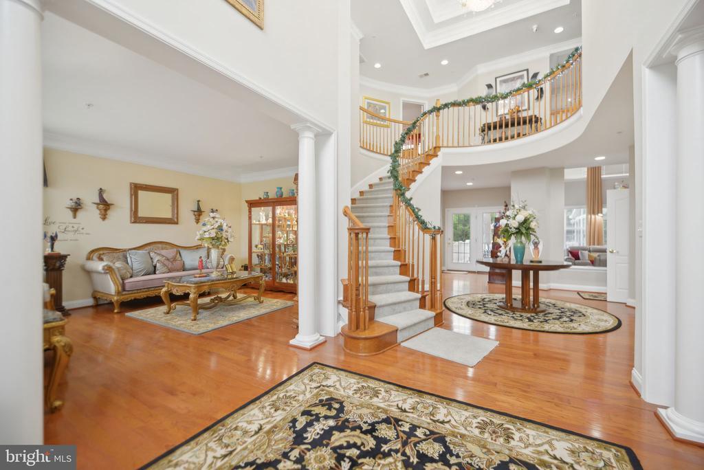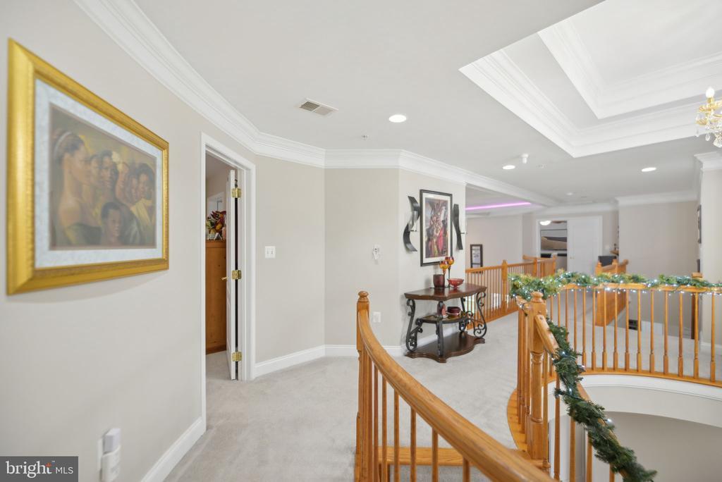 Welcome to 14201 Village Manor Court, a former model home offering over 7,400 sq. ft. of finished living space in the sought-after Palisades community. Nestled on a quiet cul-de-sac, this colonial blends timeless design with thoughtful modern upgrades across three impressive levels. Step into a grand two-story foyer with a sweeping curved staircase and chandelier with Aladdin light lift. Formal living and dining rooms flank the entry, while the sunken two-story family room—with coffered ceilings, tray lighting, and fireplace—anchors the home. The gourmet kitchen features cherry cabinetry, granite countertops, LG black stainless steel appliances (2022), double wall oven, oversized island, breakfast bar, butler’s pantry, and a morning room that flows into a four-season sunroom with heat and air. Hardwood floors and large-format ceramic tile create warmth and elegance throughout. Upstairs, a catwalk overlooks the foyer and family room. Each of the four bedrooms boasts an en-suite bath, including the luxurious primary suite with sitting room, two walk-in closets, and a spa-style bath with soaking tub, dual vanities, and a river rock shower. The finished lower level expands your living space with a fifth bedroom and full bath, a rec and gym area, a home theater with in-wall speakers and platform lighting (recliners negotiable), a full wet bar with second fridge, and a widened walkout areaway. Two large unfinished rooms provide ample storage. Outdoor amenities include a composite deck, storage shed with electric, and wide concrete driveway. The side-load two-car garage is fully finished with epoxy flooring. High-end upgrades throughout include: motion-controlled smart lighting, dual-zone HVAC (2019), whole-home surge protection, Moen Flo automatic leak detection/shutoff system, RainSoft water softener with reverse osmosis, irrigation system, Generac 16KW backup generator, and leased Tesla solar panels for efficiency. Blending luxury, comfort, and modern convenience, this exceptional Upper Marlboro home is truly move-in ready.