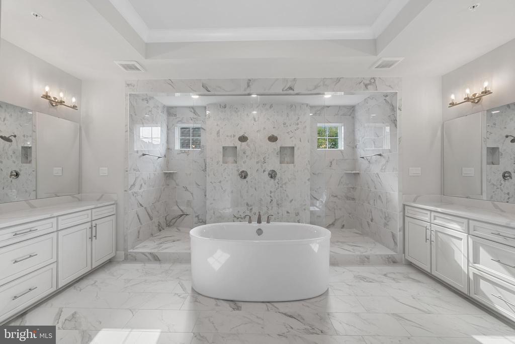 MARSHALL’S LANDING- QUICK MOVE-IN HOMES. Welcome to your new estate home- The Hampton. This home includes 6 bedrooms/6.5 baths/4-car garage with finished basement and main level suite. This exquisite home is positioned in a cul-de-sac and sits on a serene 2.13-acre homesite offering unparalleled privacy. The contemporary exterior elevation is complete stone, siding, covered porch, sleek black trimmed windows, and metal roof. The elegant 2-story foyer will take your breath away. A flex room to use as you would like would make a perfect home office. The dining room will provide you years of entertainment. The rich oak staircase and owner entry are adjacent to the foyer. The Pro-Kitchen with high end Kitchen Aid appliances to include a built-in french door refrigerator, dishwasher, 6-burner gas range, microwave/oven combo and built-in commercial grade hood vent. An abundance of cabinet space to include a built-in pantry with roll-out shelves and over-sized island with cabinetry on all sides. A beverage center is in the extended kitchen. The breakfast nook is positioned to the side. The kitchen, breakfast nook and family room provide plenty of space and airiness for everyday living as this is the hub of the home. From the kitchen views are to the foyer, dining, room, flex room, and family room. Contemporary grey cabinets are throughout the kitchen with gleaming quartz counters. Easy to maintain solid surface flooring is throughout the main living area. The soaring 10-foot ceilings allow for 8-foot doors throughout the first floor. Enjoy soaring views of the meadow from the double 8-foot sliding glass doors. Also included is a 60” Crave gas fireplace for a cold winter day. The solarium is a sanctuary of tranquility filled with bountiful light. From the owner entry a main level bedroom with private bath and walk-in closet is positioned. The owner entry provides plenty of space for a drop-zone with cabinets for storage. The 4-car garage includes an EV plug along with door openers and exterior keypads for convenience. A grand oak staircase with metal balusters lead to the upper level with a primary suite, 4 bedrooms, laundry room and plentiful storage. The primary suite is spacious with room for a sitting area with 2 separate walk-in closets- no need for sharing! Enter the opulent primary bath through double doors and view the glass walk-through ceramic tile shower and soaking tub as a focal point. Separate comfort height vanities with an abundance of storage and quartz counters are adjacent with plenty of floor space. 3 additional generous rooms grace the upper level of this home, each with sizeable walk-in closets and private baths. All secondary baths include ceramic tile, upgraded soft-close cabinets and quartz counters. For convenience, the laundry room is on the bedroom level with cabinets, utility sink and a linen closet for storage. The walk-out basement provides plenty of natural lighting and is complete with a recreation room, bedroom, a full bath, and additional finished area below the solarium- perfect for a home theater. Additional finished storage closets are in the basement. The unfinished portion allows for storage or can be finished in the future for additional rooms! Stay connected to your new home through our smart home package to include door camera, z-wave door lock, z-wave thermostat, IQ Panel and Echo pop. Light switches throughout are by Deako- plug and play modular switches to easily add motion sensors or dimmer switches on your own. Many area conveniences include the new South Lake shopping center. Perfect for commuting this location has quick easy access to Rt. 301, Rt. 50 and Rt. 4 to Washington, DC, Annapolis, or Baltimore. We can’t wait to welcome you to your new home!