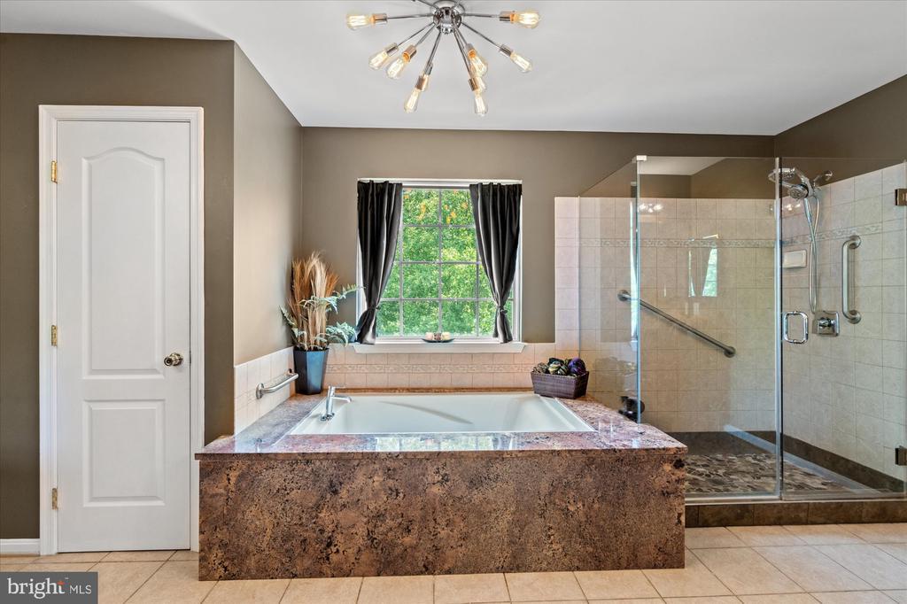 Soaking Tub, Stall Shower, Tub Shower, Carpet, CeilngFan(s), Chair Railing, Crown Molding, Formal/Separate Dining Room, Recessed Lighting, Sprinkler System, Upgraded Countertops, Walk-in Closet(s), Wood Floors