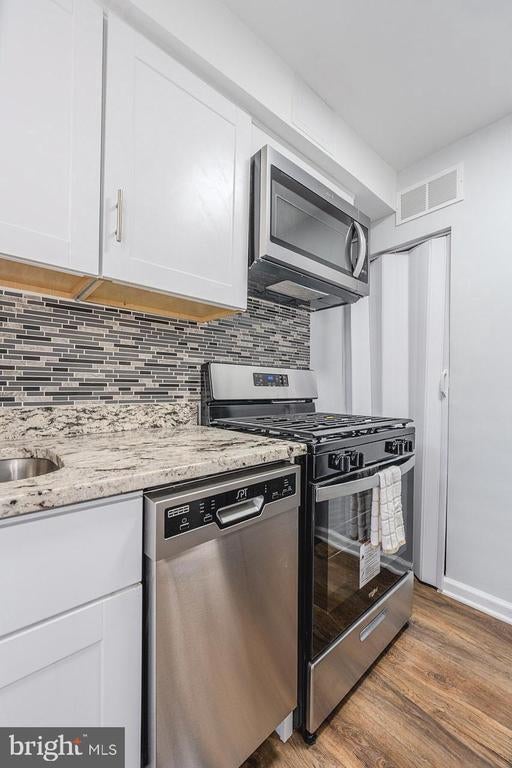 Back on the market, contract fell through at no fault of the seller. This beautifully renovated 2 bedroom condo has it all—location, bright open floor plan, rich luxury vinyl plank flooring and soft neutral designer paint throughout, updated lighting, a renovated kitchen, remodeled bath, tankless hot water heater, reserved parking, and an abundance of windows with custom blinds. The sparkling kitchen is sure to please with striking granite countertops, pristine white shaker style cabinetry, custom tile backsplash and quality stainless steel appliances including a built-in microwave and gas range. The renovated bath boasts a white vanity with vessel sink, sleek fixtures and lighting, and a tub/shower combo with hand laid designer tile with decorative inlay. Sold As-Is. All this in a fantastic location, with easy access to major commuting routes, Metro, DC, Virginia, and National Harbor. There is plenty of shopping, dining, parks, and entertainment options available in every direction including the Shops at Iverson Mall just steps away with all your daily necessities right at your fingertips!