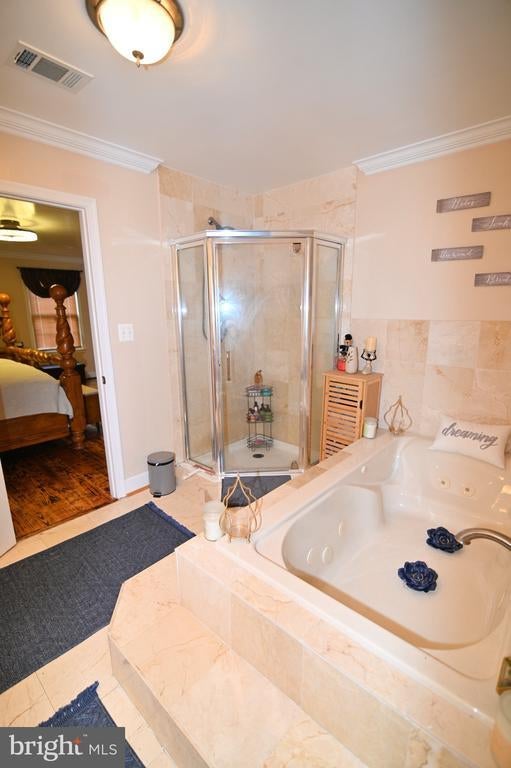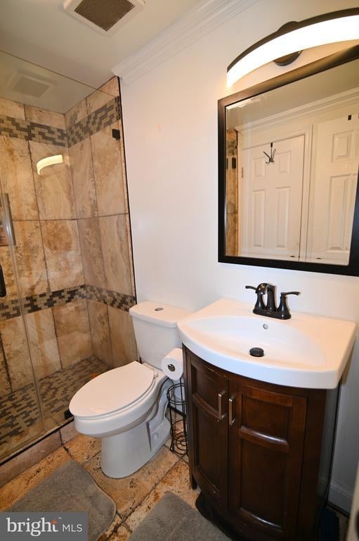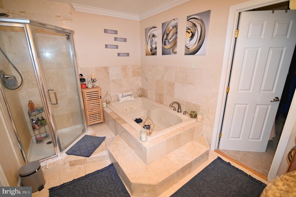 Come witness this larger than it appears, lovely colonial with four finished levels providing ample space for comfortable living, entertaining, or even rental income. The main level features gleaming hardwood floors, a formal living and dining room, a gourmet kitchen with granite countertops and stainless steel appliances, a bright morning room off the kitchen, and a main-level primary suite with a walk-in closet and a luxurious ensuite bathroom complete with soaking tub and separate shower. Enjoy easy access to an expansive two-level deck perfect for outdoor gatherings. The second level offers three generously sized bedrooms and a fully renovated full bath with custom tilework. The top level can serve as a private in-law suite or potential income-producing unit with its own HVAC zone, a spacious bedroom, huge walk-in closet, full bathroom, area for kitchenette, living area, flexible second room (office or bedroom), and direct access to the upper deck. The lower level includes a cozy recreation room with fireplace, full bathroom, laundry room, and an additional flex space for your needs. Outside, the fenced backyard features a large patio, established slab for a future gazebo or deck, and room to relax or entertain. This is a rare opportunity to own a versatile, multi-level home with endless possibilities and potential income.