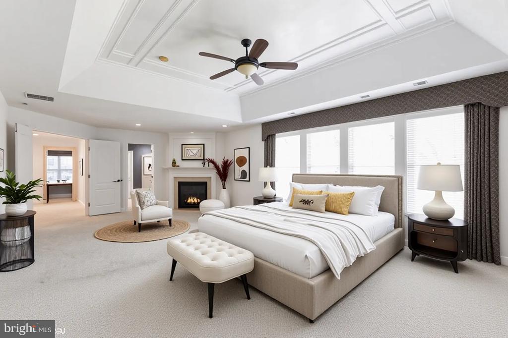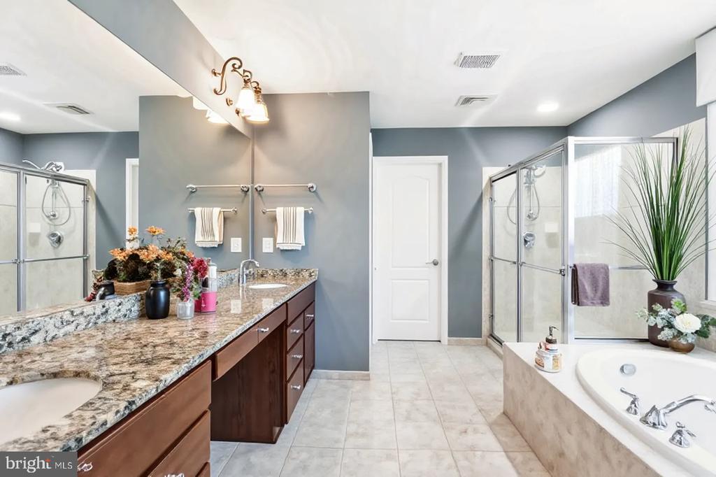 Sophistication, Space, and Style – This Is the Home You've Been Waiting For Experience refined living in this stately three-sided brick estate, featuring a two-car side-entry garage and an elegant two-story foyer that sets the tone for grandeur. The main level impresses with gleaming hardwood floors, fresh designer paint, and timeless architectural details, including columned entrances, crown molding, and shadowbox trim in both the formal living and dining rooms—perfect for entertaining in style. Step into your private main-level office, ideal for remote work or a quiet study, then flow seamlessly into the heart of the home—an expansive gourmet kitchen. Outfitted with granite countertops, a decorative backsplash, stainless steel appliances, a double wall oven, gas cooktop, and a central island, this chef’s kitchen is as functional as it is beautiful. The adjacent sunroom offers the perfect nook for morning coffee or a casual brunch, while the open-concept family room with gas fireplace provides warmth and comfort for everyday living. This exceptional layout also includes a rare dual powder room design on the main level—a thoughtful feature for hosting guests. Two staircases lead to the upper level, where luxury continues. The sprawling primary suite is a true retreat, boasting a sitting area with its own fireplace, tray ceiling, and a spa-inspired ensuite with granite double vanities, an oversized jacuzzi soaking tub, frameless glass shower, and custom tilework. The second bedroom is a private suite—ideal for in-laws or overnight guests—while the third and fourth bedrooms share a Jack-and-Jill bathroom with elegant finishes and generous proportions. Downstairs, the fully finished walkout basement offers versatility for modern living: an oversized rec room with recessed lighting, a fifth legal bedroom, a full bath, and a bonus room perfect for a home gym or studio, with large windows to let in natural light. Step outside to a maintenance-free composite deck, ideal for summer gatherings and outdoor dining. This home is situated in a vibrant, upscale community just minutes from I-95/495, with premium shopping, fine dining, and everyday conveniences close by. Some photos have been virtually staged