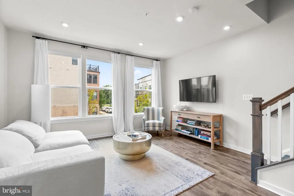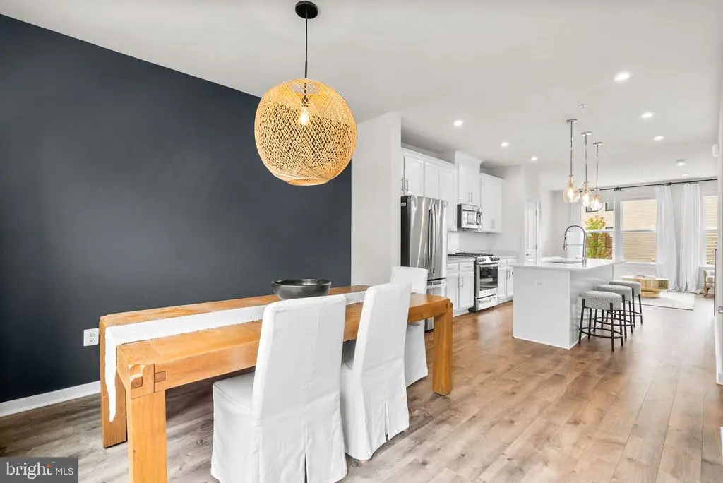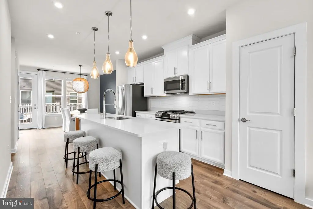 Welcome to 2503 Nicholson St, a beautifully appointed townhouse in the sought-after Riverfront community that blends modern design, generous space, and a serene setting. With 3 bedrooms, 3 full bathrooms, and 1 half bath, this residence offers stylish comfort just steps from the Metro, parks, and neighborhood conveniences. The entry level opens with a versatile flex space—perfect for a home office or additional living room—along with a convenient storage room and direct access to the garage. Upstairs, the main level is an entertainer’s dream, featuring an expansive open floor plan filled with natural light. The gourmet kitchen shines with sleek white cabinetry, stainless steel appliances, a spacious island with seating, and designer finishes. The adjoining dining area flows to a private balcony, while the living room is framed by oversized windows with peaceful community views. A chic powder room completes this level. On the second floor, discover two bright bedrooms, including a guest suite with spa-inspired bath, plus a second full bath and laundry for added ease. The crown jewel is the top-level primary suite, offering a luxurious showstopper bathroom with modern fluted free-standing tub, walk-in closet, and access to a private roof deck—the perfect spot for morning coffee or evening relaxation with sweeping neighborhood views. All this, just a 3-minute walk to the West Hyattsville Metro and close to grocery stores, trails, cafes, and dining. 2503 Nicholson St delivers modern living, thoughtful design, and unbeatable convenience in one of the area’s most desirable communities.