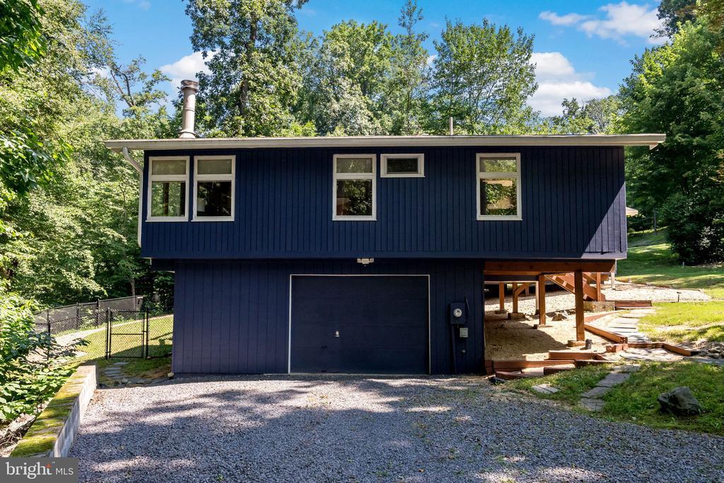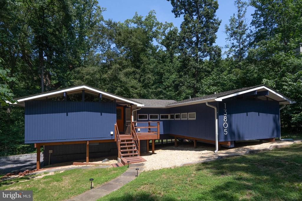 Welcome to 13805 Piscataway Dr., a striking post-and-beam mid-century modern-style home in the coveted Piscataway Hills neighborhood. Elevated among the trees and painted a bold, modern blue, this 3-bedroom, 3-bath home sits on a private 1.44-acre lot, blending architectural authenticity with thoughtful updates for a serene escape just a short drive from the city. Designed in the timeless post-and-beam style, the home’s structure is celebrated rather than concealed — with exposed wood beams, soaring ceilings, and walls of glass that flood the interiors with natural light. Warm wood walls and expansive windows create a seamless connection to the surrounding forest, while the dramatic roofline and clerestory windows and clean vertical siding offer standout curb appeal. The light-filled living room features a vaulted ceiling, a statement-making wood-burning stove, and panoramic treetop views. The open-concept living and dining areas create a warm, inviting atmosphere, while the bright, open kitchen with its center island is the perfect gathering place for family and friends. The primary suite is a true retreat, featuring a beautifully renovated bathroom with a separate shower and soaking tub. Outside, an expansive deck overlooks the fenced backyard — ideal for summer entertaining or a quiet morning coffee surrounded by nature. Additional highlights include an attached garage with an electric car charger, a separate storage shed, and an elevated setting that provides dramatic sightlines and a heightened sense of privacy. This is a home that feels both connected and secluded, offering the best of modern living in a tranquil wooded setting. Nestled in Piscataway Hills, a community known for its wooded lots, peaceful ambiance, and access to the Potomac River, this home offers a true retreat without sacrificing convenience. You’re close to marinas, hiking trails, and the Piscataway Park shoreline, while still within easy commuting distance to Alexandria, Washington, D.C., and National Harbor. Residents of Piscataway Hills enjoy the privilege of shared ownership of community waterfront property (often referred to as Lot 39). It is available for the exclusive use of residents and includes a boat ramp, picnic area and large open field. It’s a regular gathering place for community activities and a quiet place on the water that the neighborhood residents enjoy for hiking, fishing and boating.