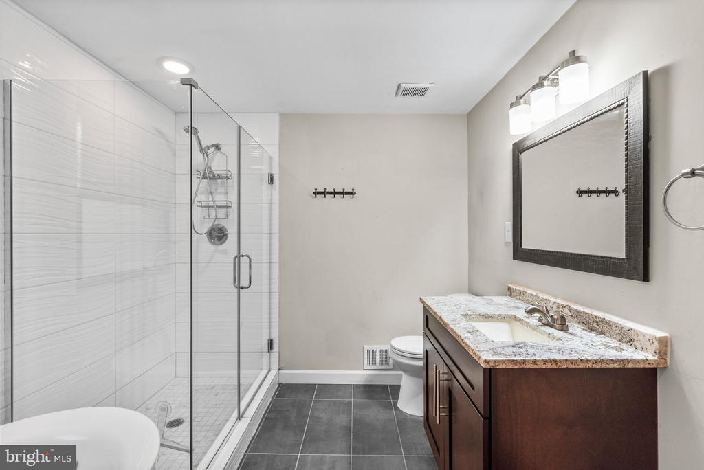 Carpet, Entry Lvl BR, Master Bath(s), Recessed Lighting, Soaking Tub, Stall Shower, Tub Shower, Upgraded Countertops, Walk-in Closet(s), Wood Floors