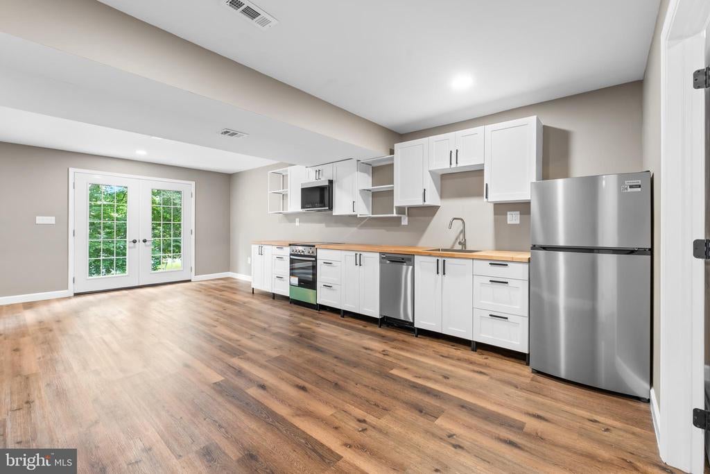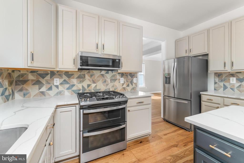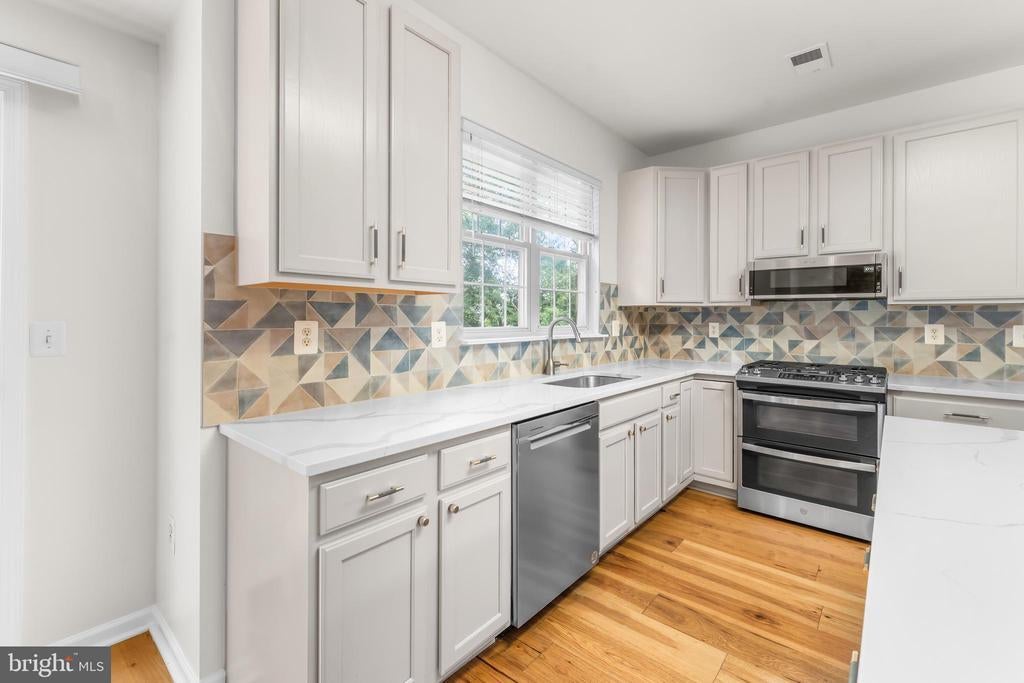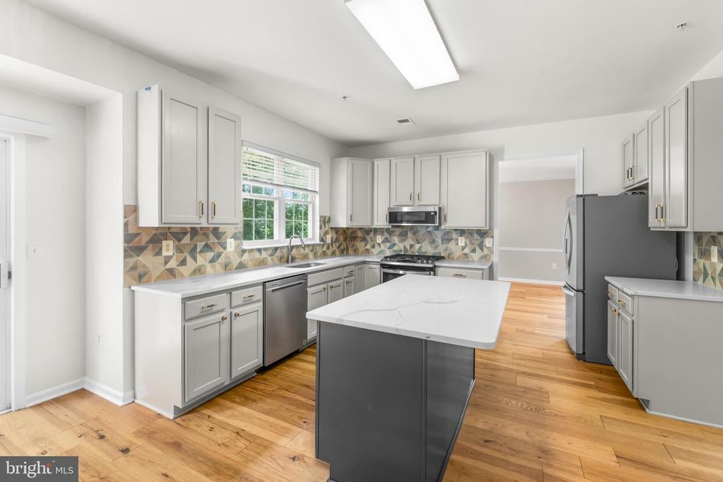 Welcome to this stunning home located in the highly sought-after Enterprise Forest community of Springdale, MD! This move-in ready property offers an abundance of space, style, and modern upgrades. The entire home features gleaming wood floors with a main level boasting a separate office/library for remote work or quiet reading, and a spacious living and dining room ideal for entertaining. The gourmet kitchen is a chef’s dream, featuring upgraded appliances, quartz countertops, and a bright morning room that opens to a large deck, perfect for outdoor gatherings. Relax in the family room with a cozy stone fireplace, and enjoy the convenience of a laundry room with updated washer and dryer. Upstairs, retreat to the luxurious primary suite, complete with multiple walk-in closets and a spa-like bathroom with a soaking tub and separate shower. Three additional bedrooms are generously sized, each with ceiling fans and ample closet space. The finished lower level offers incredible versatility, with a large bedroom, newer kitchen, full bath, and walkout to a stone patio...perfect as an in-law suite, guest space, or entertainment hub. Recent updates include a new roof and gutters (2018) and a hot water heater (2022). Don’t miss your opportunity to own this beautiful home in one of Springdale’s premier neighborhoods. Schedule your private tour today!