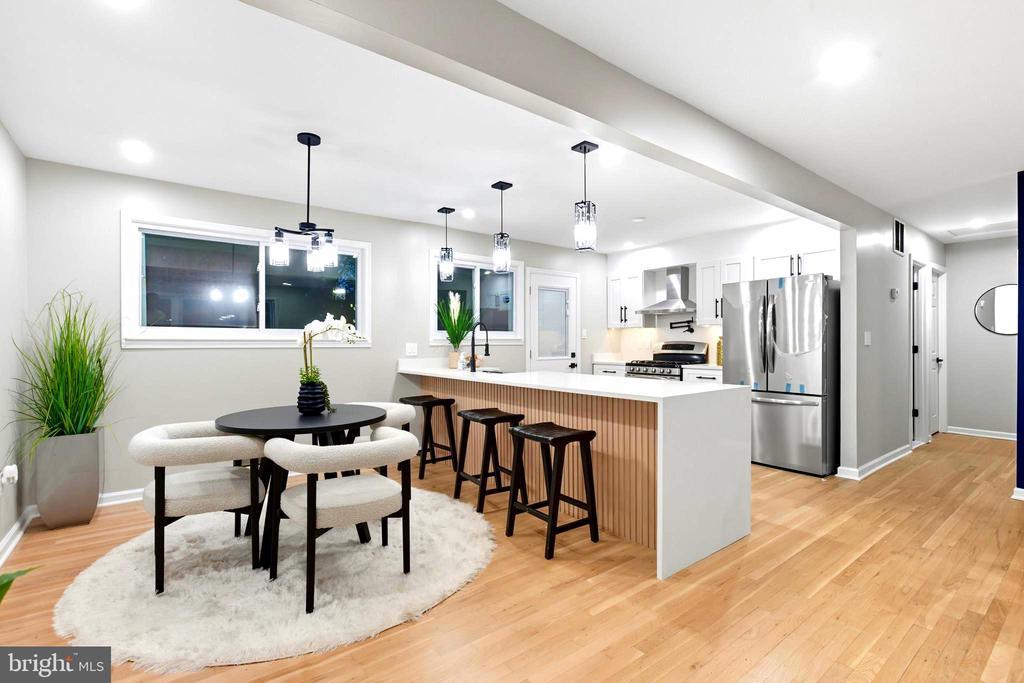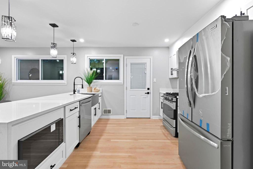 Welcome to this stunning, newly renovated 5-bed, 2 bath, brick detached home in the highly desired Fort Washington Forest community. This stunning remodeled home is a testament to modern elegance and sophisticated design. This hidden gem is tucked away in a quiet community, nestled within parks and close proximity to highways and city. Upon arrival, you will notice the the pristine large close to 1/2 acre lot with partially covered driveway that offers both parking and extra outdoor space to relax on any type of day. When entering the charming split level home you are greeted by custom wood vinyl waterproof flooring and a semi open-concept floor plan that seamlessly connects the dining and kitchen areas creating a spacious and inviting atmosphere. The fully remodeled kitchen features a spacious island, perfect for accommodating a large gathering or sitting down enjoying an intimate meal with family, stunning brand new Quartz countertops, new cabinetry, upgraded stainless steel appliances, and a stove – perfect for the home chef featuring an custom pot filler. This level continues to impress with 3 generous size bedrooms and a beautifully remodeled full bathroom with gold accents that make you feel like you are in a spa. As you access the lower level you are greeted by a fully finished walkout basement that features a large living room/entertainment area perfect for watching that must see event. This level boasts a full kitchenette, two additional spacious bedrooms, a full bath, adding extra space and flexibility for possible passive rental or short term stay income. This house checks all the boxes and is waiting to be called home.
