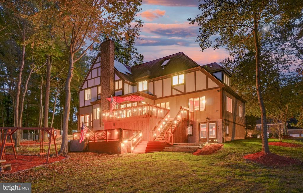 Exciting price adjustment. If you have been admiring the Tudor Treasure on the Water, which offers grand living and natural serenity, this is the perfect time to seize the opportunity to celebrate the holiday season in style. Welcome to a truly exceptional waterfront residence where timeless English Tudor elegance meets modern luxury and breathtaking natural beauty. This stately 6-bedroom, 5.5-bath estate unfolds across four expansive levels, offering almost 7,000 sq ft of inspired living space—perfectly designed for elegant entertaining, multi-generational living, and tranquil privacy. From the moment you arrive, you’ll sense something special. The curated landscaping frames this majestic home with style and grace. Atop the architectural shingle roof, 39 fully purchased and discreetly placed solar panels offer energy efficiency without compromising classic charm. Inside, every level offers a thoughtfully designed experience. The main entrance welcomes you with a soaring two-story mahogany foyer, leading into a dramatic great room with a wood-burning brick fireplace and commanding water views. Enjoy cinema-style evenings with the 80-inch wall-mounted TV, or sip morning coffee in the sunroom, basking in the serenity of Broad Creek. The remodeled chef’s kitchen boasts granite counters, upgraded appliances, and a delightful breakfast nook that opens to the upper deck—perfect for al fresco dining. Entertain in style in the Italian-inspired formal dining room, or relax in the music and memory room, featuring a gas fireplace and adjoining study. Upstairs, the grand primary suite offers his-and-hers walk-in closets and private dual bathrooms—hers with a jacuzzi tub and a glass shower—creating a luxurious personal retreat. The additional freshly painted and carpeted bedrooms include a vaulted sea-to-sky themed suite, ideal for a young dreamer. The top floor includes a newly updated guest suite and a massive bonus room, already framed and ducted, ready for your vision. Meanwhile, the lower level redefines recreation and offers a blank canvas for all lifestyle requirements. Step outside to a sanctuary of leisure and awe: multi-tiered decks, a waterfall jacuzzi, a paver patio, and a 100-foot L-shaped dock for kayaking and water sports. An Amish-built treehouse, swing set, and playland await discovery. EV-ready garage, seven-zone sprinkler system, and over 200 acres of preserved federal wetlands as your backdrop—this is not just a home, but a legacy. A rare offering of nature’s masterpiece paired with refined living. Your waterfront dream begins here.