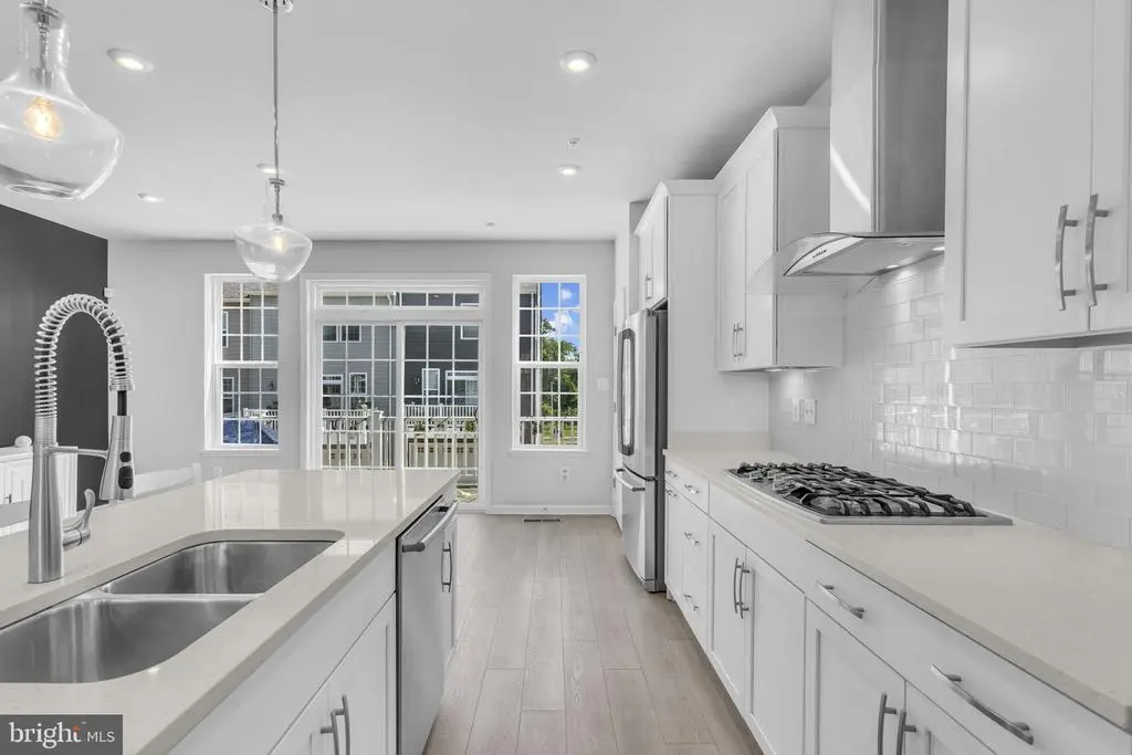Welcome to this beautifully maintained brick-front townhome in the sought-after Metro Pointe Community, offering over 3,000 square feet of thoughtfully designed living space. This spacious, almost new home features an open floor plan with modern finishes throughout. The expansive main level includes a separate dining area that leads to a sunny balcony, ideal for relaxing or entertaining. The oversized kitchen is a chef’s dream with a large island and breakfast bar, stainless steel appliances, tiled backsplash, and abundant cabinetry. Elegant wood floors flow from the main level into the upstairs hallway and primary bedroom, creating a warm and cohesive feel. The upper level boasts a large primary suite complete with a walk-in closet and a well-appointed en-suite bath. The lower level has a spacious flex space right off of the entry that can be used as an office, family room or 4th bedroom, along with a full bath. Parking is a breeze with an attached two-car garage plus additional driveway space. Ideally located just minutes from Downtown DC, and close to shopping, restaurants, grocery stores, and easy access to Route 50 and the Beltway. A must-see home offering comfort, style, and convenience!