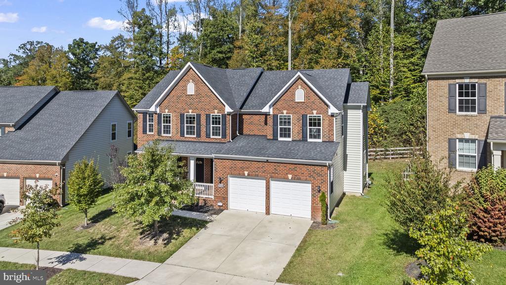 Welcome home to this fantastic brick-front Colonial that perfectly blends modern luxury, versatile living, and timeless design. This thoughtfully designed home features six potential bedrooms, including a main-level in-law suite with private ensuite bath—ideal for multi-generational living, guests, or a private home office. Upstairs, enjoy four spacious bedrooms plus a large home office or fifth bedroom, providing flexibility for today’s lifestyle. Built in 2018, this home greets you with an oversized front porch and welcoming foyer with crown molding and a convenient half bath. The formal dining room impresses with 9-foot ceilings, elegant crown molding, and luxury plank flooring that extends throughout the main level. The heart of the home is the gourmet island kitchen, featuring 42-inch cabinets, stainless steel appliances, including a double wall oven, 4-burner cooktop, built-in microwave, dishwasher, and refrigerator with water and ice. The oversized island with breakfast bar seating for four makes entertaining effortless, and the adjoining breakfast area opens to a maintenance-free deck—perfect for relaxing outdoors. The open-concept family room invites comfort and style with a gas fireplace surrounded by slate stone and a custom wood mantle, making it the perfect space to gather and unwind. Retreat to the luxury owner’s suite, featuring an octagon tray ceiling with crown molding, ceiling fan, and spa-inspired bath with dual marble-top vanity, step-in shower with designer tile, private commode, and custom walk-in closet with built-ins. The fully finished basement offers a large recreation room, full bath, and a flexible space ideal for a theater, gym, or game area, along with a generous unfinished storage room. Additional highlights include dual-zone gas HVAC, tankless water heater, sump pump with battery backup, mudroom with built-ins, and a two-car garage with openers. Washer/dryer (3 years) and dishwasher (1 year) convey. Simply a must see.