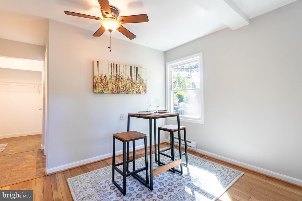 This 3 bedroom end townhouse feel like home once you enter the front gate. The entry addition allows for a mudroom with laundry and extra storage. The addition also allows for a first floor full bath. Once you walk into the main living space you notice just how wonderful the original hardwood floors are. The kitchen has been updated with stone countertops, backsplash, and great appliances. The upstairs has three bedrooms and an updated bath. The backyard has a patio and plenty of space for entertaining. There is a custom shed for outside storage as well. The attic received extra insulation during the HIP program.... with a zip tight seal above the pull down stairs it is certainly a money saver. The location is perfect for walking to the town center, shopping, cafe, theater, library, pool, and community center. Jump on the BW Parkway, Beltway, 95, and get to UMD, NASA, NSA, and DC. in just minutes. Come see this one soon!