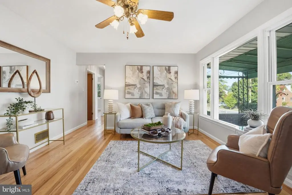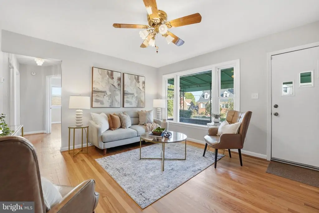 Discover this delightful home brimming with original 1956 character and lovingly maintained by the owners. This residence offers three spacious bedrooms and two full bathrooms, providing ample space for comfortable main level living. The light-filled living room creates a warm and inviting atmosphere with large picture window and built in shelving, while the eat in kitchen includes plenty of room for cooking, entertaining and dining. Throughout the home, you'll find hardwood floors and ceiling fans with lighting for added comfort. The large finished basement is a standout feature, complete with a bar, trophy cabinet with lights, and built-in shuffleboard tiles for endless entertainment. Updates include, Fresh Paint throughout (2025), refinished hardwoods (2021), 25-year fiberglass shingle roof (2014), Furnace (2023), A/C (2024), refrigerator (2022) outlets and switches (2021) . Outside, you'll appreciate the large front porch, fully fenced front and backyard, complete with swing set, a fully wired for power shed for extra storage, and plenty of driveway parking. This home offers easy access to University of Maryland, Hyattsville Crossing Metro, and major routes such as 201/Kenilworth Ave, 410/East-West Highway, and 450/New Hampshire Ave. Enjoy the added convenience of being close to BW Parkway, 495 & 95, Whole Foods, Yes! Organic, and Riverdale Farmer's Markets, Manifest Bread, Vigilante Coffee, and close proximity to DC.