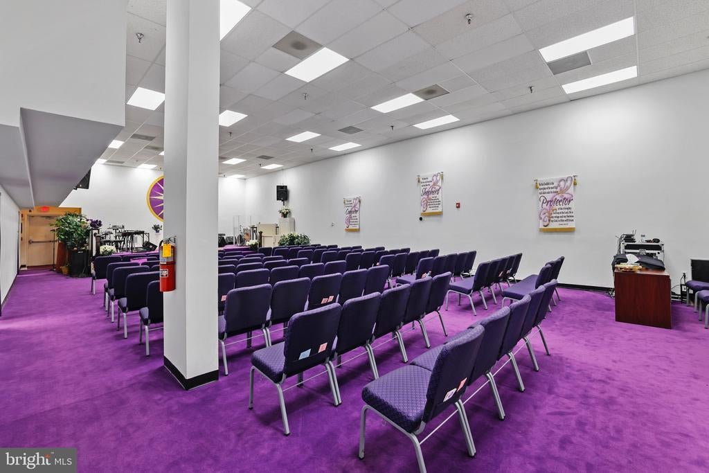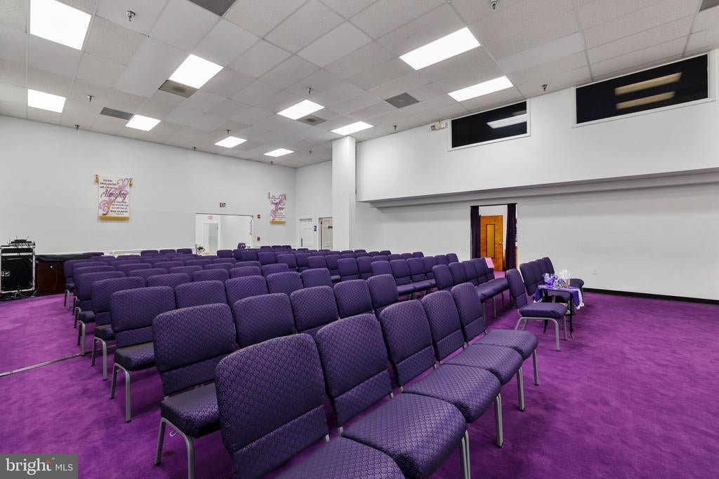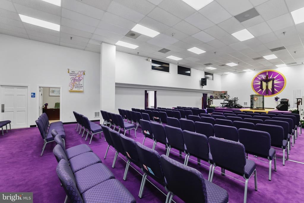As you step through the stately foyer, you are immediately welcomed into a grand and graceful space that sets the tone for everything beyond it. From there, you enter the fellowship and welcome area — a warm and inviting gathering place where community, conversation, and connection naturally flow. Beyond the foyer lies the main sanctuary, a beautifully designed worship space. The sanctuary features high ceilings, offering both openness and the potential for a future balcony area that could overlook the existing sanctuary. Throughout the sanctuary, you’ll notice royalty-colored purple plush carpet and seating, symbolizing reverence and distinction. The pulpit area itself is expansive , offering ample room for musicians, and designed with elegance and visibility in mind. For accessibility, the pulpit area features a compliant ADA lift ensuring accessibility for all. Technologically, it's fully equipped with flooring and wall outlets. This property provides a men and women’s congregational restroom for guests and members alike, along with a neutral gender restroom. In addition it also have an additional restroom on the upper level with a shower, located just across from the Pastor’s office in the conference suite. The Pastor’s office is comfortably situated adjacent to the spacious upper-level conference room, ideal for leadership meetings or private reflection. The upper level conference room offers a unique architectural touch, overlooking the sanctuary through elegant tenant windows, adding undistracted visibility to the design. Upgrades that have been made are: A brand-new HVAC system providing modern central heating and air conditioning, along with a new roof, offering peace of mind and long-term durability. For small stand up gatherings , there is a kitchenette and modest walk-through serving area conveniently adjacent to the sanctuary that's perfect for light refreshments or serving the congregation after service. This property includes a use and occupancy permit that accommodates up to 169 parking spaces. It has plenty of shared parking within the complex, providing convenience for all who attend. This building is also a modular building and easily reconfigured to fit most business needs which will provide the flexibility to accommodate a conference, seminar, event space, academy, daycare, school office space or any type of retail business. It's located in the heart of Lanham Maryland, just 5 minutes from Route 495/beltway and 10 minutes to BW Parkway. This is an exceptional worship space that provides a stately sanctuary with great accommodations, ready to welcome its next chapter of worship, community and service.