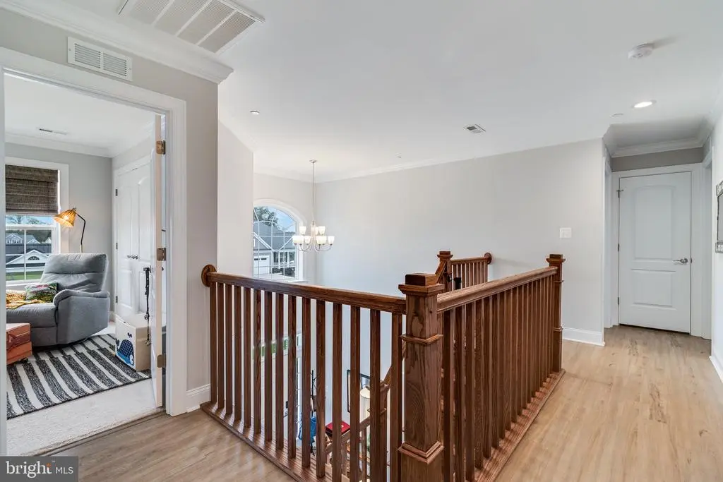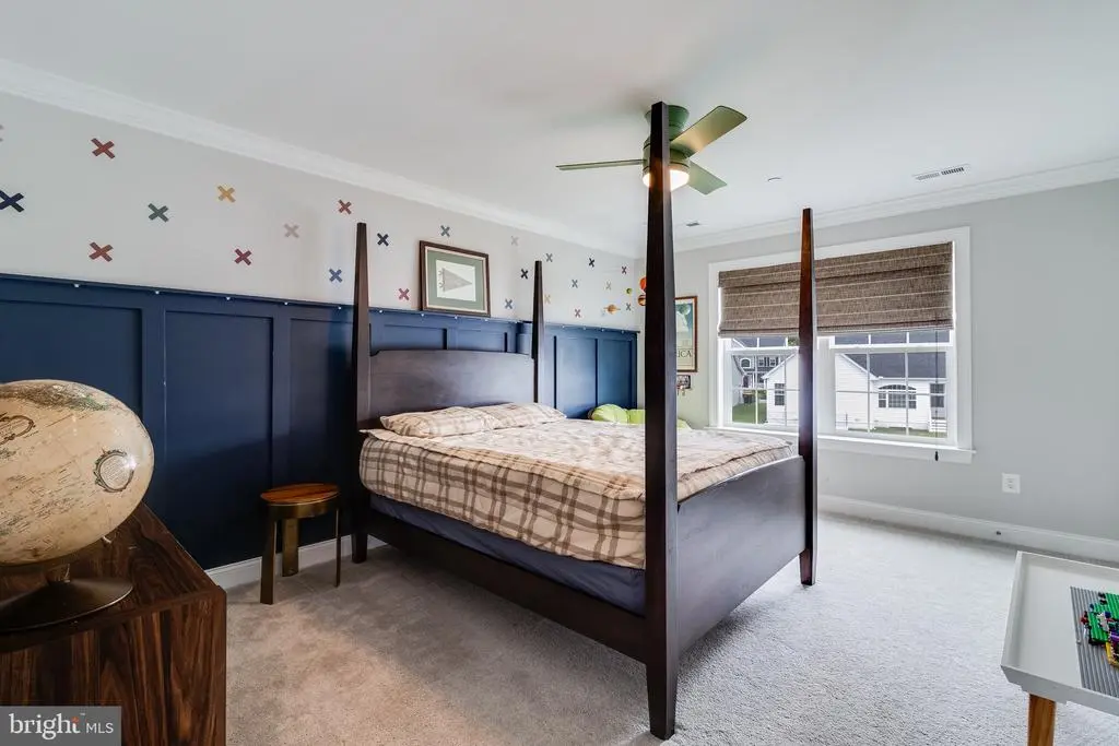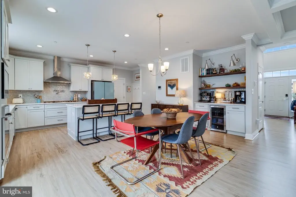 Built in 2022, this stunning QBH Adelina floor plan shows like brand new, complete with every feature you would want if you designed it yourself. Thoughtful upgrades and stylish finishes flow throughout, making this home truly move-in ready. The main level features a 4 ft rear extension, gorgeous LVP flooring, and timeless trim details including crown molding, shadow boxes, and a full front door trim package. A designated office with glass doors is the perfect work-from-home space, while the dining room offers a classic setting for gatherings. The grand kitchen is a showstopper with a pot filler, tile backsplash, stunning quartz countertops, stainless steel appliances, and a charming built-in bench with cubbies by the garage entry. A custom coffee bar with wood shelving adds style and extra storage, complemented by a huge walk-in pantry. Upstairs, the owner’s suite impresses with a tray ceiling, multiple closets, and a spa-like en suite bathroom featuring dual vanities, a soaking tub, and the coveted grand shower with glass doors. The finished basement expands your living space with 9 ft ceilings, recessed lighting, a spacious rec room, a true 5th bedroom, and a full bath, plus a convenient walk-up to the backyard. Outdoor living shines with a 22x10 solid cedar pergola over an oversized concrete patio, landscaped privacy-fenced yard, and raised garden bed, all kept lush with front and back in-ground sprinklers. Additional highlights include custom-fit shades and blinds throughout, coffered ceilings in the living room, and a community playground just across the street. Sidewalk-lined streets add to the welcoming neighborhood charm of Meadows at Town Run!