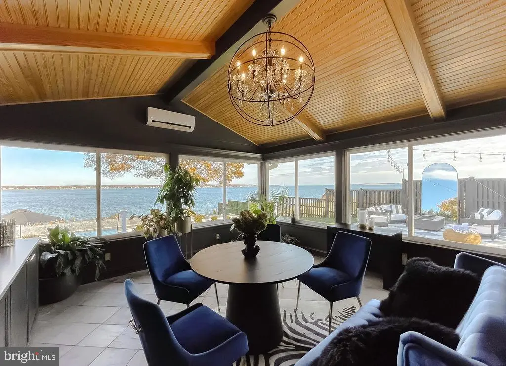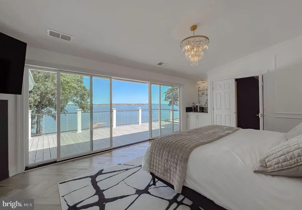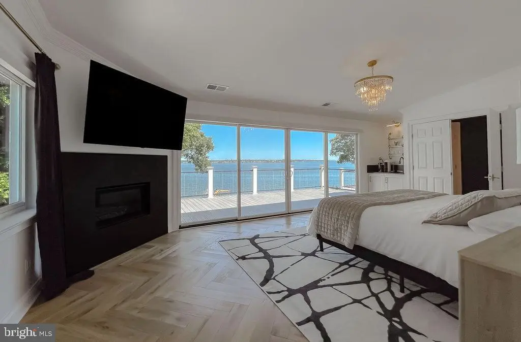 Bella Vista on the Patuxent River – An Elevated Waterfront Retreat Nestled on the banks of the Patuxent River in Esperanza Farms, Bella Vista is a five-bedroom, five-and-a-half-bath waterfront retreat where intentional design meets resort-style living. Every detail has been reimagined—interior renovation in 2023 and exterior transformation in 2024—to create a home that inspires awe, comfort, and connection. Inside, elegant craftsmanship defines each room: four spa-inspired primary suites, including one with a fireplace and coffee bar with sink and beverage refrigerator. The chef’s kitchen features a gas fireplace, high-end appliances, and generous workspace that flows into a welcoming living area with its own gas fireplace. A private gym with sauna and a light-filled all-season sunroom provide relaxation year-round. The main level primary bath was thoughtfully designed with accessibility in mind, featuring a curb-less, zero-threshold shower, designer grab bars, and a spacious layout that blends beauty with universal comfort. Waterfront bedrooms offer automatic remote-control shades, and the custom entertainer’s closet adds everyday luxury. The laundry room includes two washers, two dryers, and a marble dog shower, while the garage adds an additional shower for dogs or beach-day clean-ups. Outdoors, the home transforms into a private resort: a heated saltwater pool and elevated hot tub, two exterior gas firepits, and expansive patios for golden-hour gatherings. A wood-burning fireplace anchors cozy waterfront evenings. The private pier with Jet Ski lift offers direct access for kayaking and canoeing. With its 5-star short-term-rental rating and turnkey design, Bella Vista is more than a home—it’s an experience, ready to be lived from the very first sunset.