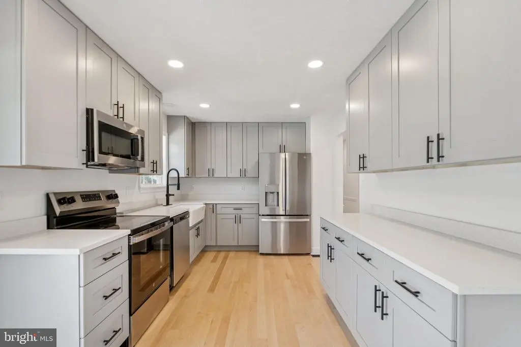 Stunning 4/5 Bedroom, 3 Bath Split Foyer – Move-In Ready! With Two car garage. Welcome home to this beautifully updated 4-bedroom, 3-bath split foyer that perfectly blends comfort and modern style. Step inside to find gleaming hardwood floors and recessed lighting throughout, giving the entire home a bright, open feel. The oversized upgraded kitchen, featuring 42-inch cabinets, a farmhouse sink, stainless steel appliances, black hardware and faucet, and ample counter space—ideal for cooking and entertaining. Each of the three upgraded bathrooms has been tastefully remodeled with custom tile work, modern vanities, and designer fixtures. The primary suite includes a double vanity and plenty of storage. Enjoy the outdoors on your large deck with steps leading to a level fenced backyard, perfect for gatherings or quiet evenings by a fire. The home also features a cozy wood-burning stove, ceiling fans, and additional storage areas for convenience. Conveniently located in a desirable neighborhood, with convent to shopping. This home offers both style and functionality—truly move-in ready! Schedule your private showing today and fall in love with your next home.