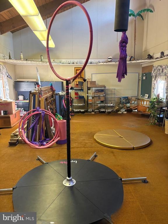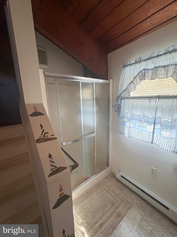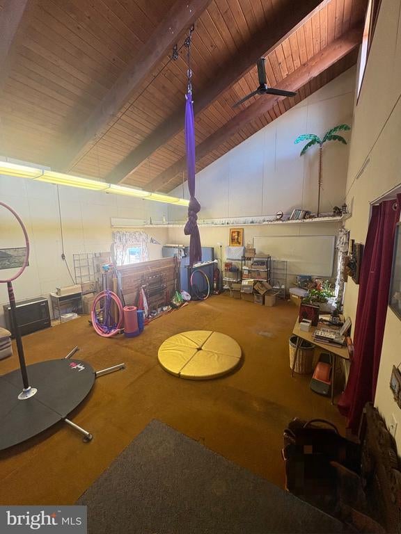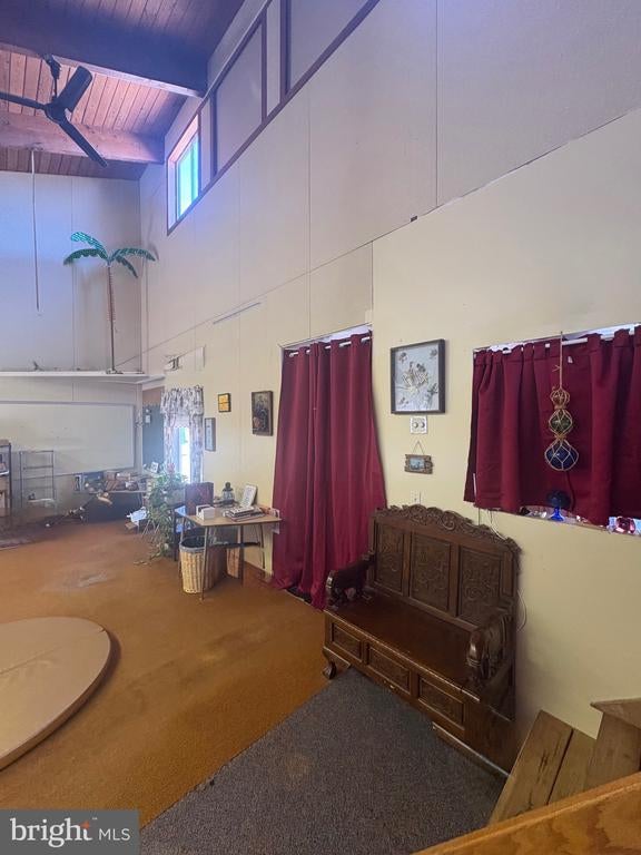 Carpet, CeilngFan(s), Entry Lvl BR, Tub Shower, Stall Shower, Recessed Lighting, Exposed Beams
