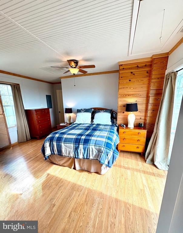 Stall Shower, Bathroom - Walk-In Shower, CeilngFan(s), Crown Molding, Entry Lvl BR, Master Bath(s), Master Bedroom - Bay Front, Shades/Blinds, Wood Floors