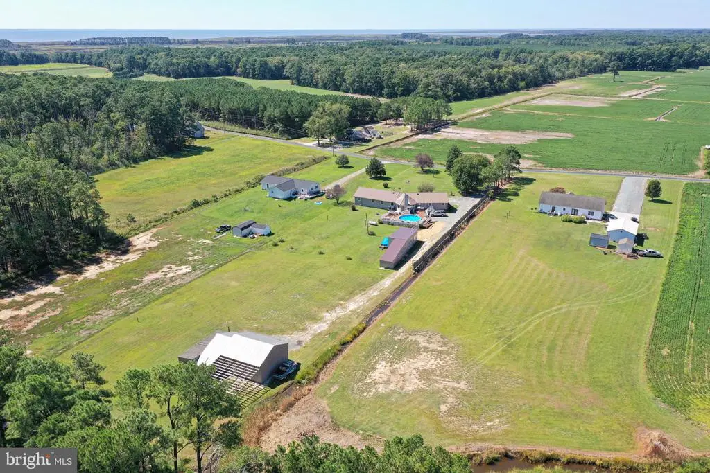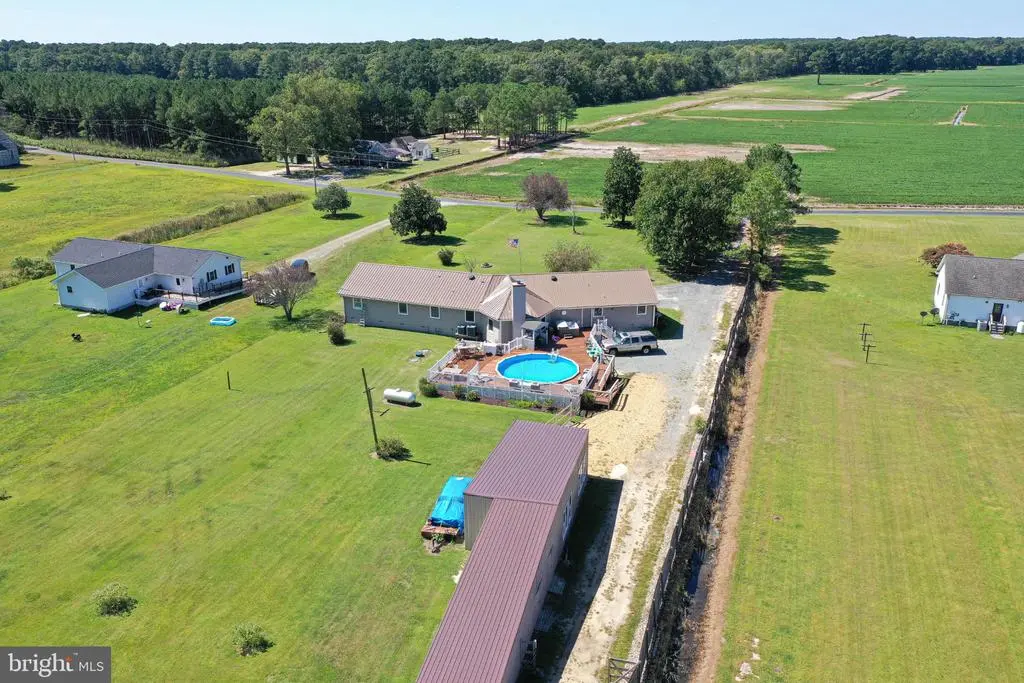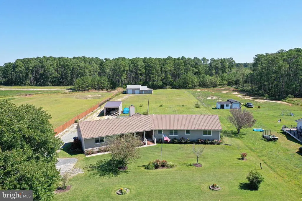 Welcome Home to 27949 Phoenix Church Rd, where modern comforts meet rural tranquility! This sprawling 4 bedroom 2.5 bath 3000sqft rancher has been lovingly maintained by the same owners since it's construction, and is now waiting for it's new owners to come and introduce themselves! Situated down a mature tree-lined gravel driveway, this home warmly welcomes you with a lengthy covered front porch, generously sized for ample seating, and accented with custom-trimmed box column, and a mix of brick and cedar-shake style siding, setting the tone for the rustic retreat you're readying to enter. Inside, you'll find a generous entry/foyer area, offering views into the breakfast nook, kitchen, living area, and hallways leading to bedrooms. The living area offers a comforting space to relax, offering a conversation-pit style stepdown, also equipped with a brick mantle and wood stove. Situated off the kitchen, you'll find a formal dining area, and additional space for a breakfast nook or alternate dining space. The kitchen feathers stainless steel appliances, a generous amount of ceramic-tiled countertops, and tons of bright white cabinetry. Off the kitchen, you'll find a utility/laundry room granting access to the expansive rear-deck, and an additional oversized den space, with separate office room. Opposite the kitchen/laundry you'll find 3 large bedrooms, a full bathroom with a tub-shower combination, and an en-suite primary bedroom. The oversized primary bedroom features a vaulted tray-ceiling with hidden lighting, a sitting area, and an en-suite bathroom with a large jetted-soaking tub, oversized walk-in shower equipped with in-wall jetting and an overhead rainshower head. Enjoy the outdoors and quiet eastern shore atmosphere right from the comfort of your own massive rear deck, outfitted with a covered grill area, above-ground swimming pool, and hot-tub, all overlooking an open carport with additional storage area in the rear, and a large detached garage building, roughed-in for electric and ready for finishing touches. Come and introduce yourself, this home has so much to offer and is best appreciated in-person! Located minutes from Crisfield, and under an hour from Salisbury, for access to shopping, restaurants and dining, healthcare, and just over an hours drive to Maryland and Delaware Beaches, and Chinocteague Island VA. Schedule your private tour today!