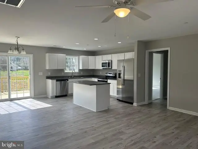Photos of a different house with same floor plan. Home to be complete in Dec 2025. Open layout. Kitchen features island with granite countertops and island. Laminate floors in main living area and bathrooms. Carpet in all 3 bedrooms. First floor bedroom with walkin closet and full bath. Rear deck and paved drive. HOA of $170 a month covers all lawn care.