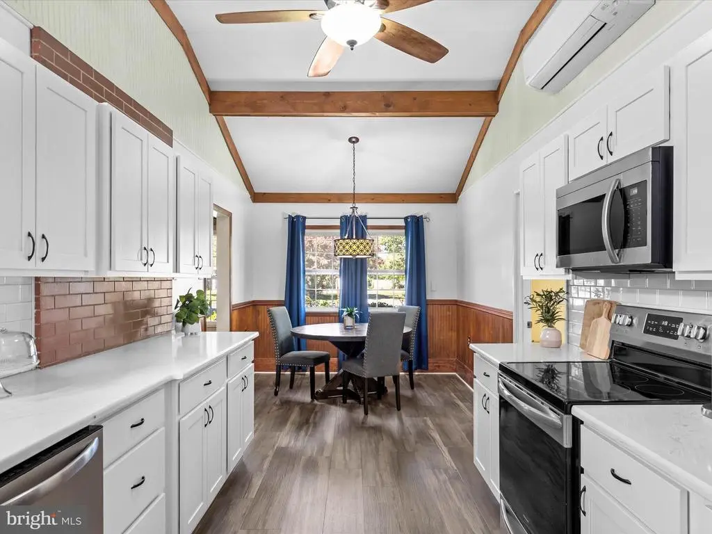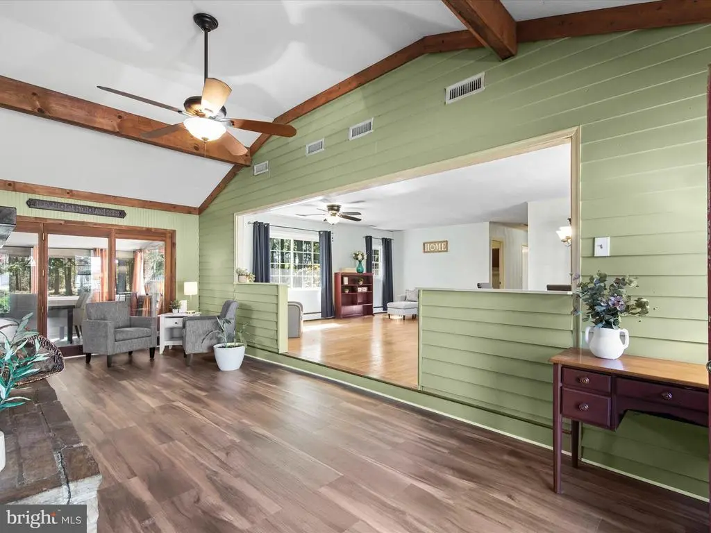 Escape to peaceful coastal country living in this beautifully maintained 4-bedroom, 2 and a half bath rancher situated on 5 serene acres in Mt. Vernon! This spacious and thoughtfully designed home offers a warm, inviting feel with a blend of hardwood floors, new luxury vinyl plank, crown molding, and charming architectural details that make every room feel special. The heart of the home is the completely renovated, eat-in kitchen, a true showstopper featuring granite countertops, modern cabinetry, and a functional layout perfect for gatherings. A breakfast nook offers a cozy spot for morning coffee, while vaulted ceilings with exposed wood beams add rustic elegance and spaciousness. The dining room, accented by a beautiful bay window, creates a bright and welcoming space for family meals or special occasions. The dining room flows into the living room and the adjoining sitting room features a striking floor-to-ceiling stone and brick fireplace and doors leading to the expansive screened-in porch. Ideal for entertaining, the porch includes a bar area and overlooks the beautifully landscaped property with mature trees providing shade and privacy. The primary bedroom features wood floors, an attached private bath, and serene views of the surrounding greenery. One of the additional bedrooms offers direct access to the rear deck, perfect for stepping outside to enjoy the fresh country air. With four generously sized bedrooms and plenty of storage throughout, this home is designed for both comfort and functionality. Outside, two sheds provide ample space for hobbies, tools, or equipment. The property backs to serene woods, offering a wonderful sense of peace and seclusion. House is not in a Federal Flood Zone. Perfectly located less than a mile from Mt. Vernon Harbor, the public boat ramp, and a community playground, basketball court, and picnic area, this home combines the tranquility of country life with easy access to water recreation and outdoor fun. Whether you’re seeking a coastal getaway or a comfortable forever home, this sprawling rancher on five picturesque acres offers the ideal blend of country charm, modern comfort, and coastal convenience.