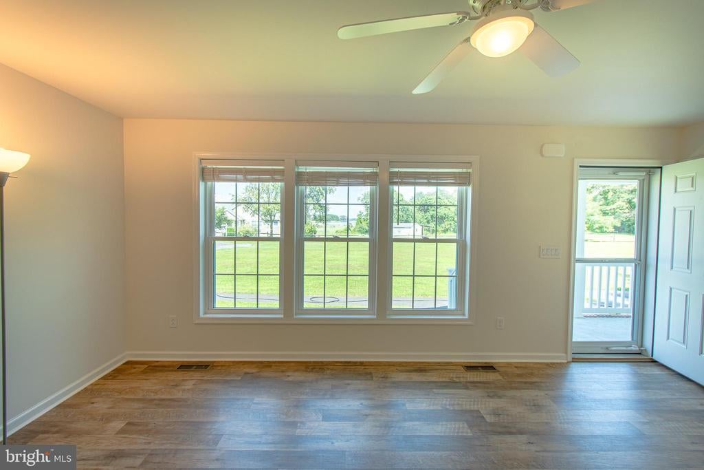 Barely lived in totally maintenance free rancher on a 3+/- acre lot with broad water views. Freshly painted with new landscaping it is vacant and available for immediate occupancy! Main area has beautiful wood laminate flooring with carpet in all bedrooms. Bonus room to be used as an office/family room, granite counters with wine refrigerator and all nearly new appliances with utility room and washer and dryer. Located at the end of a cul de sac with mature trees and a great water view of Harris Creek and Sherwood landing. A truly unique opportunity!