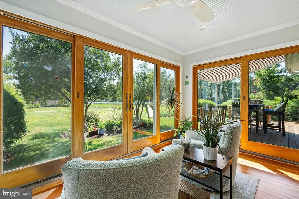 Welcome to this enchanting waterfront retreat, beautifully sited on 6.2 acres overlooking Old House Cove with scenic passage out to San Domingo Creek. Designed in a coastal style and offering 3,340 sq. ft., this 4-bedroom, 2.5-bath residence blends timeless comfort with the natural beauty of the Eastern Shore. A charming front porch sets the tone, leading into sunlit living spaces with soaring vaulted ceilings and gleaming American Cherry hardwood floors. The main-level primary suite is a serene haven with a private sitting area and spa-like bath. Upstairs, a loft lounge overlooks the living room and connects to three additional bedrooms and a shared hall bath. The gourmet kitchen, outfitted with premium appliances, flows seamlessly into the dining area, living room with cozy gas fireplace, and waterside sunroom that opens to a deck with sweeping views. A private office, versatile bonus room, and attached 2-car garage add convenience and flexibility. Outdoors, the private pier( with electricity and water) offers two slips and electric lift, inviting endless days on the water, while mature trees, lush landscaping, and native flora frame this idyllic setting. Countless updates further enhance this exceptional St. Michaels offering and a recent survey shows room for pool.