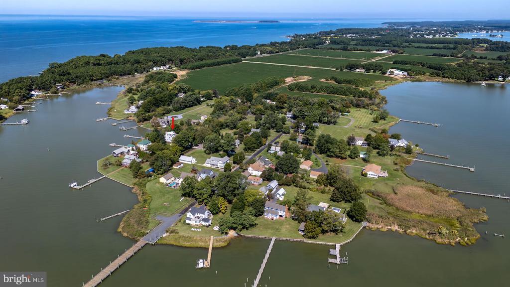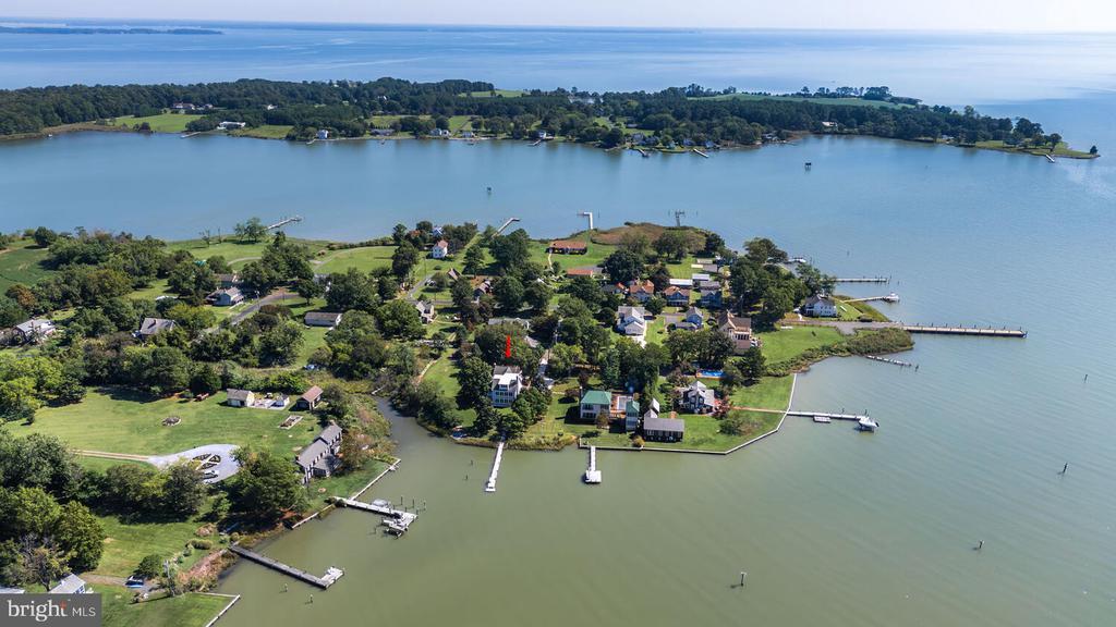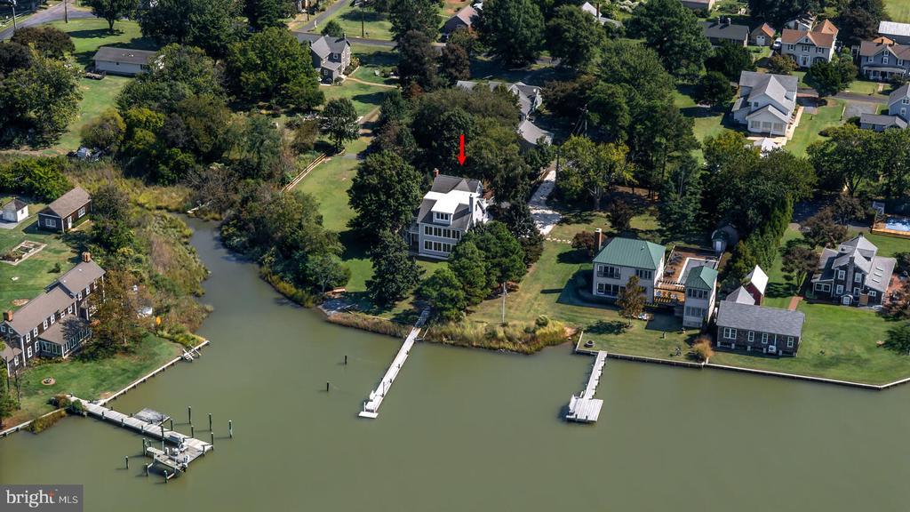 Experience waterfront living in the historic community of Fairbank on Tilghman Island. This home offers timeless character and sweeping views of Black Walnut Cove. Built in 1900 with later additions, you'll find multiple decks, porches, and patios, along with a unique circular staircase leading to the second-floor porch, enhancing its architectural charm. Inside, the gourmet kitchen and family room provide a central gathering space with expansive water views, granite countertops, and custom cabinetry. A secondary kitchen provides added convenience for entertaining. The owners have invested in significant updates, including new two-stage heat pumps with UV filter and whole-house dehumidifier, fresh interior paint throughout, refinished hardwood floors, and an encapsulated crawlspace for efficiency. The second floor offers three bedrooms and full bath. On the third floor you will find your Owner's Suite with views to your private dock and en-suite bathroom with tile shower. Outdoor amenities include a boat ramp, dock with water and electric, and floating dock making days on the water simple and enjoyable. The side yard of the home offers a firepit and ample space for a pool. With over 3,500 square feet and these amenities, this home presents a great opportunity for your Eastern Shore retreat or short term vacation rental, with approval.