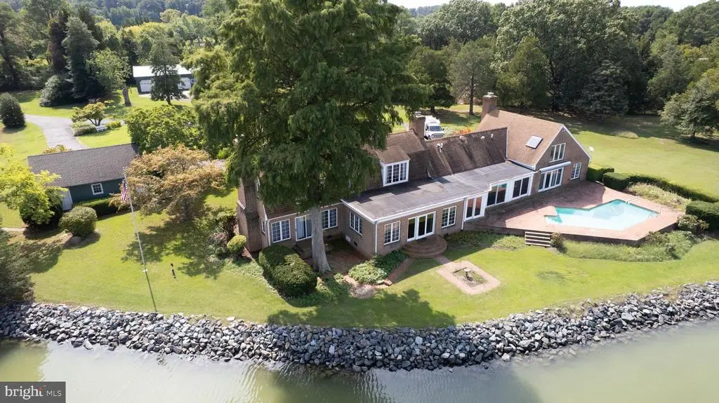 Royal Oak - escape to your own Eastern Shore estate. Anderby Hall is part of an original 1680 land grant. This 12 +/- acre parcel features 3,260' +/- of shoreline (mostly rip rapped) including a tidal pond and island (accessed by bridge)to a private peninsula and private cove. The gated driveway leads to the main house- a 3000 +/- sq.ft. Colonial featuring a great room with fireplace, charming old pine floors and hand hewn ceiling beams. Granite kitchen with island. Primary suite with his/her closets and second floor office/den area. Almost every room offers a gorgeous view of Irish Creek. Brick walkways ways lead to the water side pool. The dock has 5'MLW and you are minutes to the Choptank RIver. Additional 2600 sq. foot guest house. Tennis courts (could be picklebal!l) with gazebo. 30x50 detached 3 car garage, and an additional 1 car garage with workshop and a service shed. Licensed shoreline. Geese, ducks, deer, turkey. Convenient to Easton and St. Michaels Enjoy a lifestyle of luxury, privacy, and natural beauty. Embrace the exclusive charm of waterfront living today!