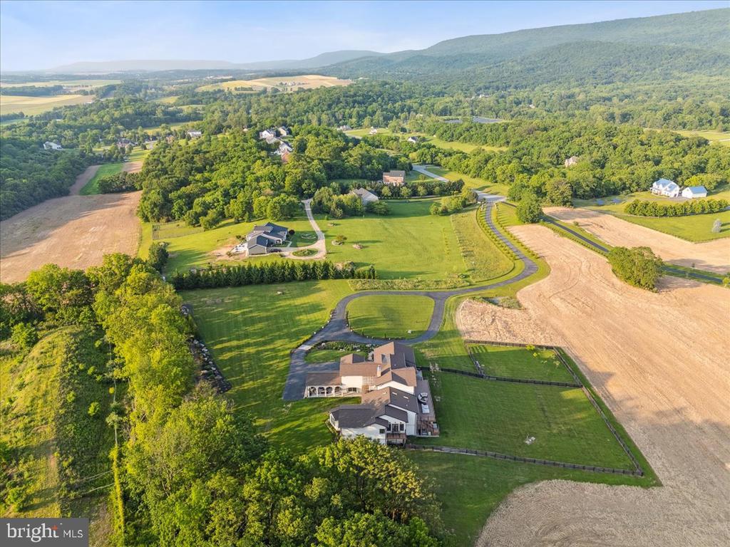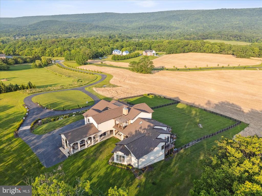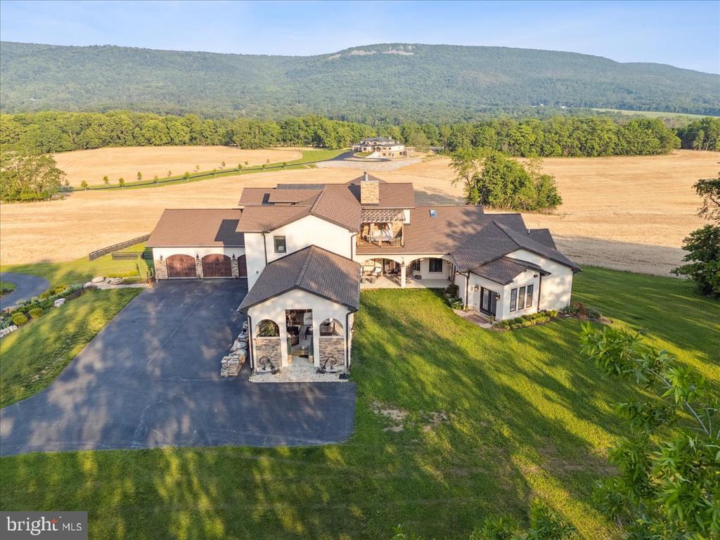SHHHHH I have a secret.... This may be the most amazing home in the Mid-Atlantic. This home is located on over 27 acres with extensive hardscaping and a luxury villa design unlike any other. The main level includes panoramic views of this estate with custom hardwoods, a historic fireplace, coffered ceilings, a full home sound system, and a one-of-a-kind dining room that includes a balcony. All of this is accompanied by a main level primary suite that rivals any vacation getaway that you could hope for. The upper level includes multiple balconies to see the entire property. Each bedroom includes a hotel style feel that is completely unique. All bathrooms are customized and the bedrooms include expansive closets. The lower level is unlike any basement you have ever seen. Over 10-foot ceilings, and a commercial equipped bar this feels like an event venue in your own home. The style and design must be experienced in person. Walkout access provides tons of natural light. This home could entertain large parties or could just be your own private oasis that allows you to escape the hustle and bustle of life. With Geothermal heating this home is extremely energy efficient without the expenses you would expect to find in a home this size. There is so much to take in here but don't forget to experience the hydroponic growing room underground that is currently growing vegetables for perfect off the grid living. If this inside is not enough the exterior offers multiple living areas, all with their own unique and spectacular views. The attached guest house offers a bedroom, full bath, and the perfect kitchenette. This home screams ENTERTAIN HERE, but if you just want to escape and keep it to yourself, if can accommodate that as well. The main level garage includes three oversized bays that extend extra deep in this garage. The lower level garage includes more motorized storage plus a large workshop. The property includes extensive hardscape, sprinkler systems, fenced areas and a large farmable area. This provides the opportunity for Ag tax credit is desired. Enjoy a wooded portion with a historic stone wall. Views of mountains (check), woods (check)... You will find no other home to match this in the DMV.