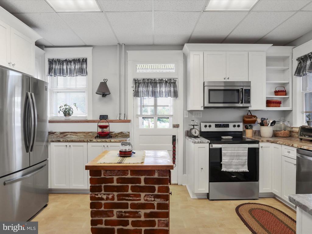 Welcome to this beautifully restored brick home located in the sought-after North End of Hagerstown, perfectly blending timeless charm with thoughtful modern updates. Featuring rear parking for two vehicles and an oversized detached garage, this property offers both convenience and functionality. Inside, you'll find high ceilings, refinished hardwood floors, and a stunning kitchen with soft-close cabinetry, dovetail drawers, premium granite countertops, and stainless steel appliances. French doors connect the living and dining rooms, creating a warm and inviting space ideal for entertaining. The home also boasts a mahogany front porch and a covered back porch off the kitchen for relaxing outdoor living. A walk-up attic offers the potential to be finished into a playroom, office, or additional living space, while the basement with a concrete floor is ready for future expansion. With exceptional craftsmanship and custom details throughout, this home is truly one of a kind.