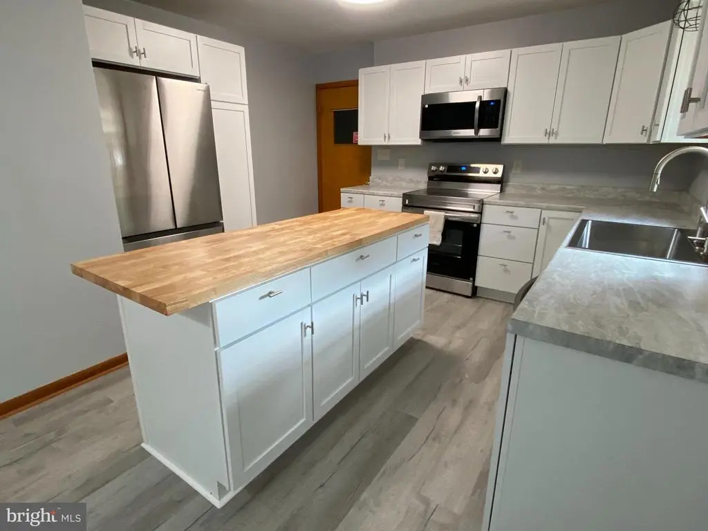 BRAND NEW KITCHEN just completed. All new cabinets, new counters, flooring, lights, appliances and a kitchen island with butcher block. This Charming all-brick 3-bedroom, 1.5-bath rancher offers timeless appeal! Step inside to find hardwood floors throughout most of the main level, a wood burning fireplace for added heating. 3 bedrooms, a full hall bath and the primary bedroom with a half bathroom. Enjoy easy living with everything you need on one level. The finished lower level is perfect for a family room, home office, or gym with lots of storage and laundry. The home also features a 1-car garage, a lovely backyard ideal for play or gardening, and a relaxing patio with retractable awning for outdoor entertaining or bird watching. Come see this beautiful mature community with easy access to the highway, shops, and just 1 mile to the Fountainhead Golf Course and Country Club. A solid home with great bones—don’t miss this opportunity!