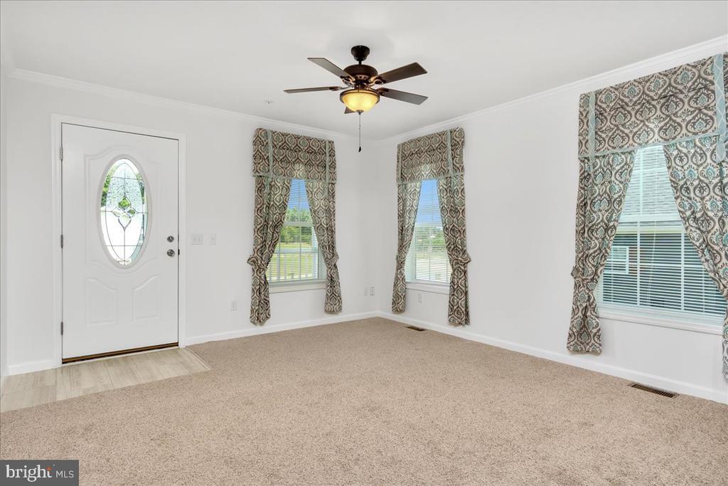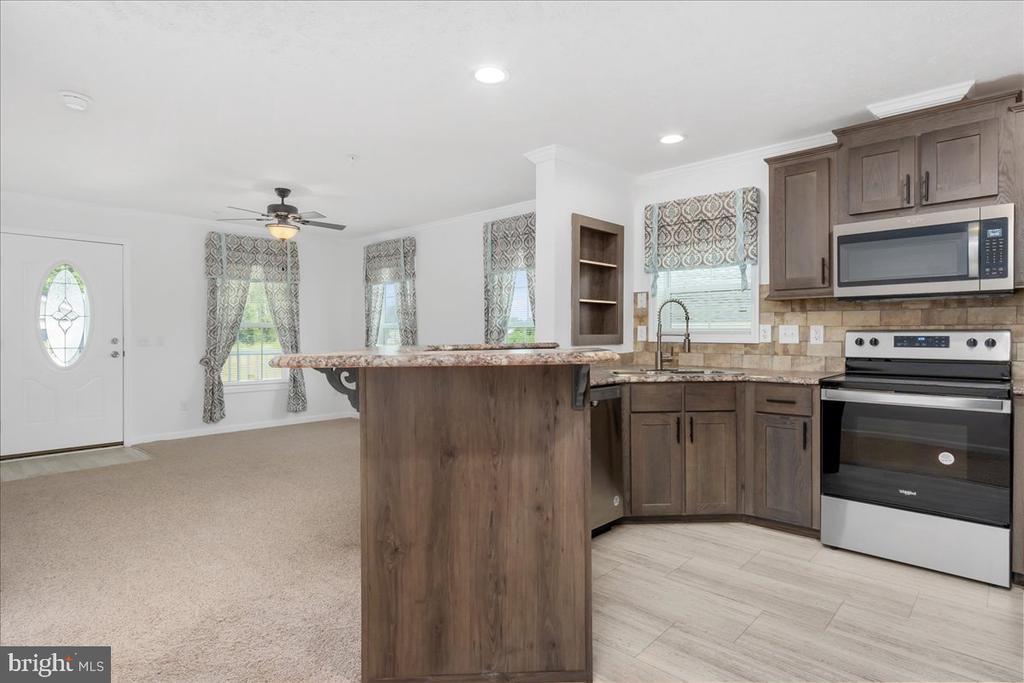 Brand new construction! One level living. This home features both a covered front and rear porch to enjoy the outdoors. The porches are maintenance free and constructed of composite and vinyl materials. The white concrete driveway offers access to a side entrance and convenient mud room with laundry access. Step through the front door and you're greeted by a spacious open floor plan. The living room extends into the kitchen and is separated by a breakfast bar that could seat 4 comfortably. The kitchen is equipped with upgraded Whirlpool stainless steel appliances, includes LED recessed counter top lighting and crown moldings. There are three walls of cabinets and counters offering plenty of space to spread out when cooking for holiday parties or entertaining. The formal dining room is just off the kitchen and offers table space for 6. The home features a rear family room perfect for use as a home office or separate TV room away from the front living room. The family room offers sliding glass doors to the rear covered porch and yard, perfect for pets to stretch their legs and play. The primary bedroom offers a spacious retreat for the homes owner, separated to the front of the home and away from the other two bedrooms offered in this home. The primary suite features crown molding, carpeted floors, two walls of windows, a walk-in closet and a deluxe primary bath. The primary bathroom offers a walk-in over-sized shower, a separate corner jetted tub, and two separate vanities. There is a lot to like about this spa like bath. This home sits on a brick to grade crawl space offering convenient one level living. The location offers quick access to I-81, major shopping and dining options within a 1 mile radius, and is located within walking distance to area schools. Plans for Kilpatrick Woods include a clubhouse and other amenities as this community continues to grow. There are additional new homes available for sale at this time in this community as well. Contact Listing Agent for details.
