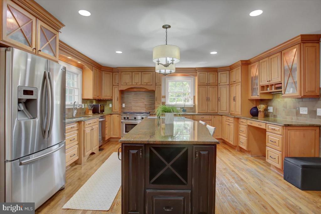 You will be amazed by this meticulously maintained brick home nestled in sought-after Brightwood Acres East, offering the perfect blend of traditional charm and modern functionality. As the photographer said, "this is one of the nicest homes I've seen in months." From the brick-lined walkway, step inside to discover a bright and open floor plan featuring gleaming hardwood floors throughout the main level and luxury vinyl plank flooring upstairs. The heart of the home is the gourmet kitchen, complete with granite countertops, upgraded wood cabinets, gas cooking, an oversized island with guest seating, and ample space for entertaining. Enjoy an extended meal in the formal dining room, or take time for yourself in the living room with a book by the gas fireplace. Upstairs, the spacious primary suite feels like a peaceful retreat with vaulted ceilings and a spa-like bathroom with a soaking tub, separate shower, and dual vanities. All bathrooms boast sparkling granite countertops and ceramic tile floors. Three additional bedrooms provide plenty of room for family or guests, while a fifth bedroom has been thoughtfully transformed into a state-of-the-art laundry room with built-in storage and workspace. The partially finished basement expands your living space with a cozy lounge area, wet bar, and beverage refrigerator—ideal for game nights or casual entertaining. And there’s plenty of storage in the unfinished lower level space. Step outside to a fenced-in backyard oasis where you can spend quiet moments on the patio or entertain guests on the deck – an ideal setting for both relaxation and celebration. Whole house humidifier installed by current owners. All this, just minutes away from major commuter routes, Meritus Hospital, schools, restaurants and shopping. Across the street from Black Rock Golf Course and Washington County Regional Park. No HOA fees or city taxes. Don’t miss this exceptional opportunity to own a home that truly has it all!