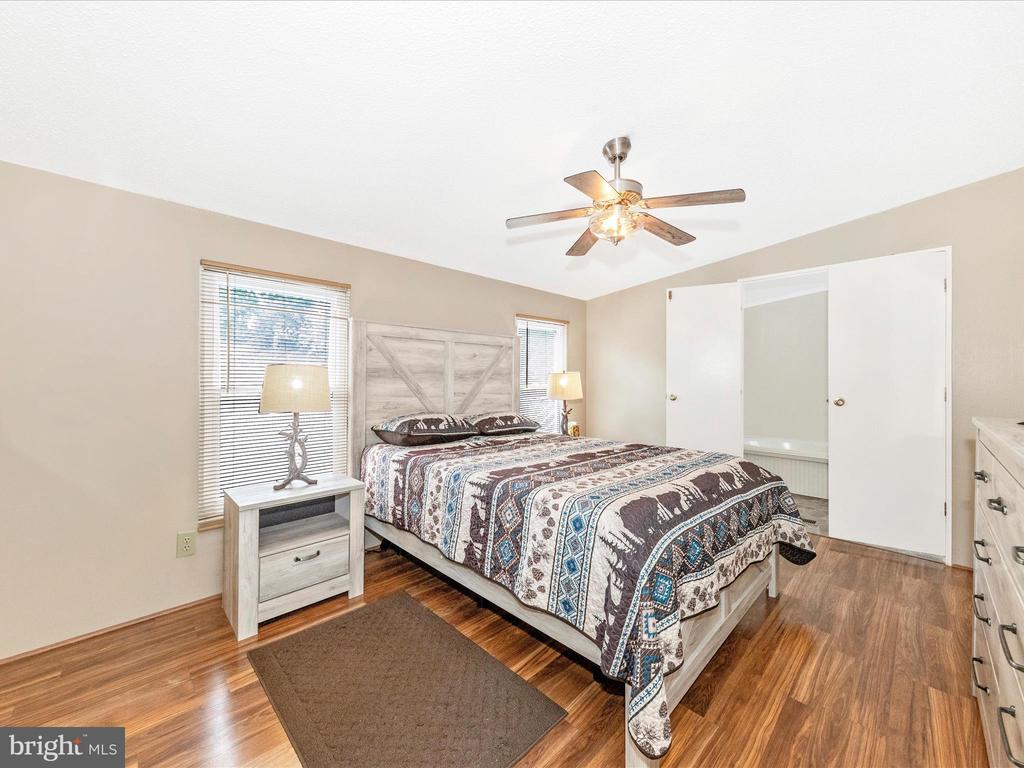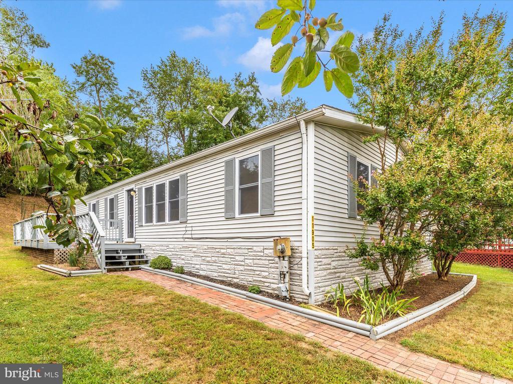 Highland Manor-3 Bedroom, 2 Fullbath home with many upgrades. Open Floorplan with vaulted ceilings, full size Washer & Dryer. MBR has FB with soaking Tub and Sep. Shower, Dual vanity. Large wrap around deck. NO LOT RENT. Fee Simple sale.