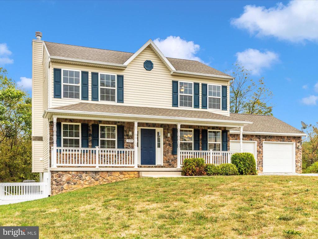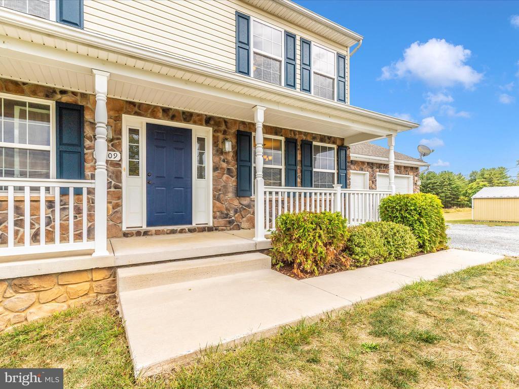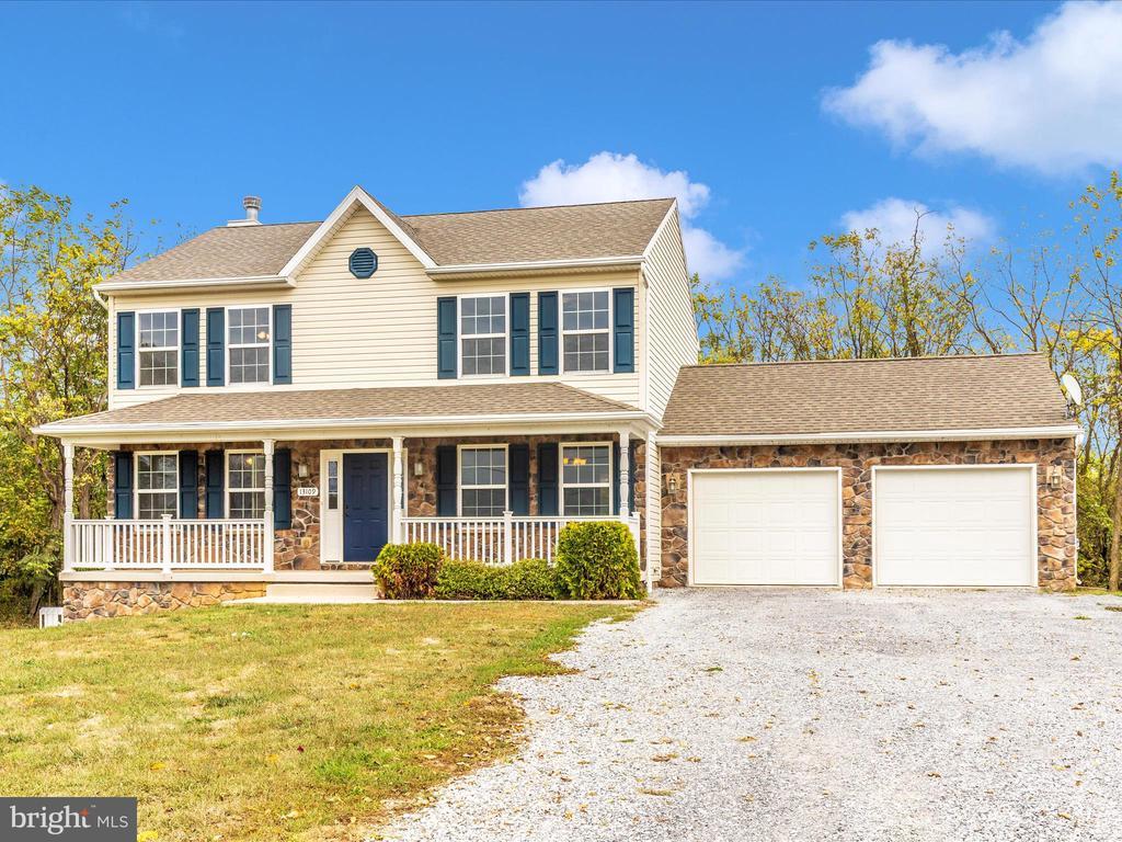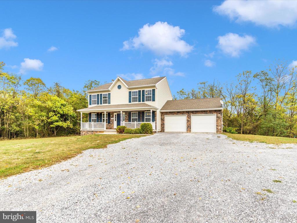 Discover the perfect blend of classic charm and modern comfort in this beautifully updated 3-bedroom, 2.5-bath colonial home situated on 3.84 partially wooded acres. Enjoy unparalleled privacy and the freedom of no HOA restrictions. This property offers both serene, open spaces for outdoor recreation and mature trees for natural beauty. Step inside to a freshly painted interior featuring a combination of elegant hardwood floors, durable ceramic tile, and plush new carpeting throughout the main level. The new carpeting comes with a transferable warranty for peace of mind. The heart of the home is the upgraded kitchen, boasting gleaming granite countertops, ceramic tile flooring, stainless steel appliances, a spacious island for meal prep and entertaining, and rich cherry cabinetry. The dining room showcases beautiful cherry hardwood flooring, perfect for formal or casual gatherings. Relax in the inviting family room, complete with new carpet and a cozy wood-burning fireplace. A dedicated home office on the main level provides the ideal space for remote work or study. Upstairs, the primary bedroom suite offers a luxurious retreat, featuring two generous walk-in closets and a private primary bathroom with a soaking tub, separate shower, and a two-sink vanity. For convenience, the washer and dryer are located on the main living level. The oversized two-car garage provides ample parking and storage. The full basement includes a walk-out exit and a window, offering excellent potential for finishing into additional living space, such as a future bedroom. This home features all-electric utilities, a well water system equipped with a UV light water softener and filter, and an 80-gallon hybrid hot water heater replaced in 2022. A passive Radon system is also installed, and the septic system has been diligently maintained and pumped every four years. An American Home Shield home warranty, paid through March 2026, will convey to the new buyer. Enjoy the perfect blend of country living with easy access to commuter routes and shopping. Don't miss this opportunity for a beautifully maintained home with privacy and space!