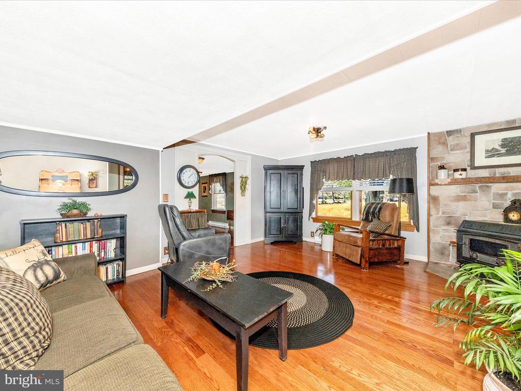 Discover the charm of this one-level, well-maintained home, nestled on a sprawling 6.26-acre lot in a serene rural setting. The true gem of this property is the land itself--6.26 acres of flat, usable ground bordered by trees, with farmland views beyond and a peaceful creek tracing the property line. Multiple outbuildings add both charm and function, including a quaint "she shed" with electric and its own wood stove, a 100+ year-old barn currently serving as a two-car garage, workshop, and loft (with potential to reconvert to stables), and even a woodshed so picturesque it looks like it belongs in a painting--fully stocked and ready for use. With no restrictions, bring your animals and create the homestead you've been dreaming of (just add fencing). The home itself provides a solid foundation with thoughtful upgrades: expanded through fully permitted and inspected additions, brick exterior with covered porch and an extensive brick and paver patio. Inside, you'll appreciate replacement windows for efficiency, a wood stove for supplemental heat, and a flexible third bedroom that connects (pass-through) to the primary bedroom--perfect as a sitting area, nursery, or office. This property offers more than a home--it's a lifestyle, offering the perfect blend of country charm, privacy, and practical living.