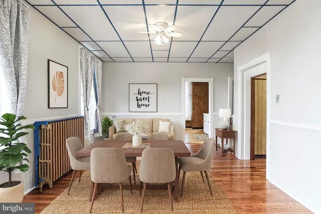 Attic, Bathroom - Tub Shower, Ceiling Fan(s), Formal/Separate Dining Room, Wainscotting, Wood Floors