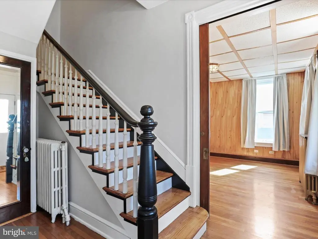 Step back in time with this beautifully preserved Victorian home, where timeless charm meets modern comfort. You will fall in love with the double door entryway leading into a stunning foyer. A classic staircase awaits with freshly painted white risers and bold black accents setting the tone for traditional craftsmanship. There are hardwood floors throughout both levels which have been refinished and much of the home has been freshly painted. You will appreciate all the timeless amenities this home has to offer including pocket doors, built-ins, a turret in attic with pentagon-shaped windows, classic radiators for heat, and high ceilings throughout. The 15' by 12' dining room offers pocket doors, chair railing, and ample space for a formal dining table. The kitchen offers new Vinyl Plank Flooring, new Stainless Steel Appliances, new kitchen sink, and cabinets were professionally painted with new hardware added. New Vinyl Plank Flooring has been installed in kitchen and both bathrooms. An original freestanding claw tub is located in the upper level bathroom. The primary bedroom is oversized at 16' by 12' and offers a curved wall of windows allowing plenty of natural light. On the upper level, you will also find a bonus room offering base and wall cabinets (freshly painted) and a newly stained countertop. This room is ideal for storage, crafts, or the hobbyist in need of their own space. There is an upper level balcony located right off of this room. Outside of this room, you will also find a spacious closet with shelves for extra storage as well. Just prior to listing, a new water and waste lines were installed to the home. In addition, all copper piping was replaced with PVC, a new hot water heater and expansion tank was installed, new washer machine hookup installed, and more. Over $50k in plumbing work was performed and invoice/scope of work is uploaded in disclosures. Exterior painting on windowsills and porch were also completed (as well as windowsills inside of home) prior to listing. There is a detached 2 car garage in rear of property accessible via alleyway. Don't wait: schedule your showing today!