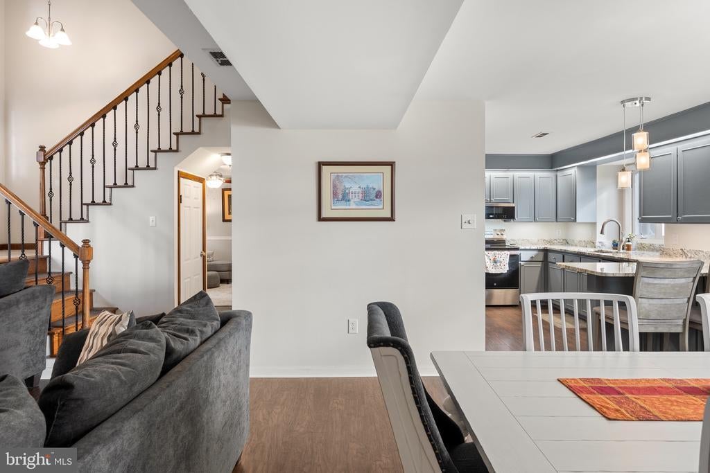 Your private oasis awaits! Nestled down a private lane on a stunning, partly wooded 1/3-acre lot, this 2,000 sq ft masterpiece is a secluded, upgraded gem! The soaring two-story living room, with a wood-burning fireplace and wide-plank laminate floors, glows with natural light. The showstopper kitchen dazzles with granite counters, custom cabinets, stainless appliances, and backyard views. Enjoy a spacious dining room for epic gatherings and a versatile family room. First floor features a full bath, oversized laundry, garage access, sunroom, and a gorgeous backyard with white vinyl fencing—perfect for BBQs and your four legged friends. Upstairs, gleaming hardwood floors lead to an oversized primary suite with walk-in closet, two more generous sized bedrooms, and another full bathroom with tile shower/tub combo. Act fast—this stunner won’t last! Tour today!