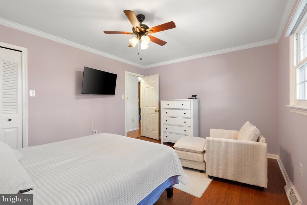 Bar, Tub Shower, CeilngFan(s), Crown Molding, Wd Stove Insrt, Walk-in Closet(s), Wet Bar/Bar, Wood Floors