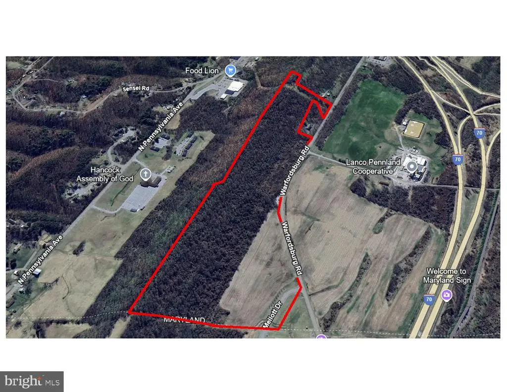 64.55 acres of undeveloped land zoned Commercial / Business General that has been annexed into the City of Hancock. In exchange for the annexation, the City has agreed to extend public utilities including water and sewer to the property at no expense to the owner. There has also been an agreement that city real estate taxes are not being charged to the owner on this property until public utilities are completed. The zoning will allow for many opportunities including, but not limited to, business and professional offices to retail sales and services. There is a chance that the zoning could be changed to Residential for the potential use of multi-unit residential dwellings etc to be built. The potential uses for this property are endless due to the easy access location at an I70 interchange and road frontage. Borders Warfordsburg Rd and sites to I70. There is an additional 64.4 acre parcel on the West Side of Warfordsburg Rd bordering I70 also for sale $2,600,000 with the same terms in regards to taxes, annexation, utilities and zoning.