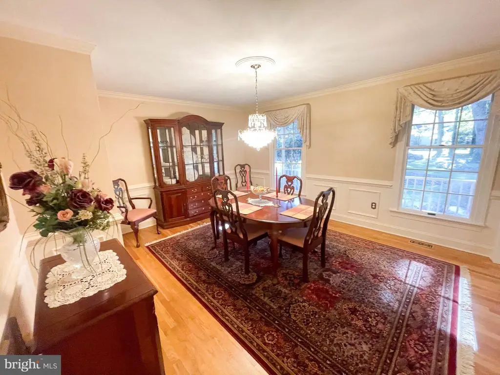 Bar, Formal/Separate Dining Room, Skylight(s), Window Treatments, Wood Floors