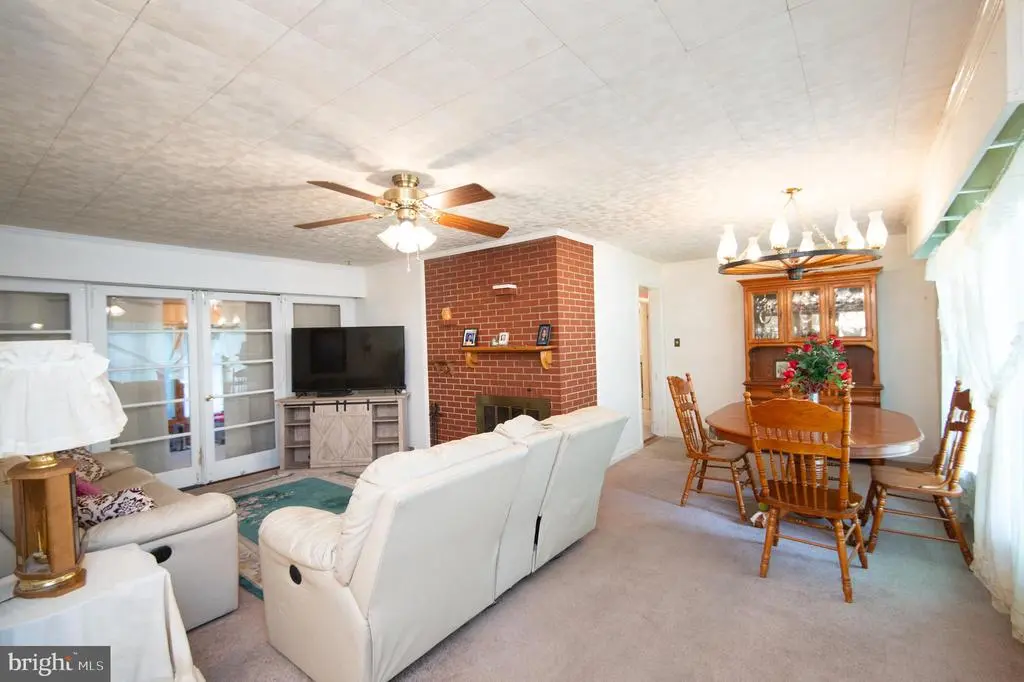 Welcome to this quaint 3BR/1.5BA expanded Rancher on a spacious lot just outside city limits. Pull into the circular driveway surrounded by adult shade trees and make your way to the covered front entry. Step inside to a home filled with tons of original character, natural light, and an open view of the living and dining rooms. The cozy living room features an electric fireplace framed by a classic brick hearth. Just off the living room behind french doors, is a large family room with a vaulted ceiling, sun filled space, and is finished in natural wood paneling, perfect for relaxing or entertaining. The kitchen offers plenty of cabinet and counter space, a gas range, and a double sink beneath a window overlooking the backyard. Down the hall, you’ll find two sizable secondary bedrooms, a large primary bedroom, and a full hall bath. Just off the extension that connects the house to the two car garage is a half bath, laundry, stairs leading you down to the unfinished basement for extra storage, and an oversized mudroom. Step out from the mudroom or family room to a large partially covered patio, in a yard filled with green space, adult trees, and an in-ground pool that is completely fenced in. This home is ideal for any new homeowners and features a brand new septic system. Imagine all this and in close proximity to shopping, restaurants, and commuter routes.