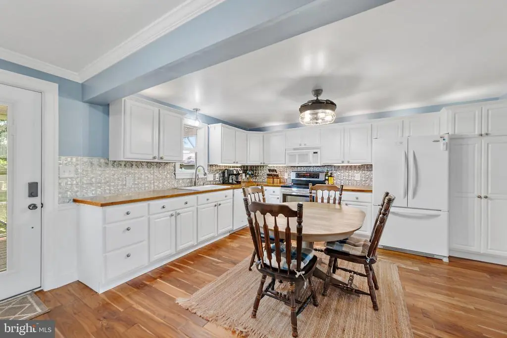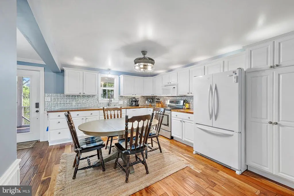Charming Farmhouse! Enjoy the peaceful lifestyle of Sharptown, known for its scenic parks, fishing piers, public boat ramp, and the beloved annual Sharptown Carnival, a long-standing community tradition that brings neighbors together with rides, games, and local flavor. Located in the Mardela School District, this 2 bedroom, 1.5 bath farmhouse offers a blend of charm and thoughtful updates. The main level features teak wood flooring and an open floor plan, with a remodeled kitchen completed in 2021 and a convenient powder room nearby. Step into the screened-in porch or unwind in the fenced backyard with a detached garage, ideal for a workshop or hobby space. Upstairs, a naturally lit teak staircase leads to two cozy bedrooms and a full bath. Notable upgrades include a newer roof in 2022, porch and garage roof replaced in 2017, and Pella windows installed in 2022. Call for your personal tour!
