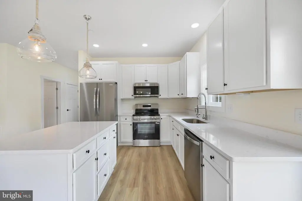 Welcome to this beautifully built 3-bedroom, 2.5-bathroom home featuring modern design and thoughtful upgrades. The main level includes a convenient half bathroom and a stunning kitchen complete with a spacious island, Quartz countertops, stainless steel appliances, Fabuwood cabinets with self-closing drawers, and a pantry with custom wood shelving. Durable LVP flooring with a manufacturer lifetime warranty, craftsman-style trim and doors, and stylish Ledo door handles add an upscale finish throughout. Upstairs, the primary suite offers a large bathroom and a generous walk-in closet, while two additional bedrooms share a full bath. The home also includes a two-car garage with an insulated garage door for comfort and efficiency. Exterior features showcase superior builder upgrades such as Certainteed siding, IKO Cambridge Lifetime LTD shingles, MI V3000 series windows, and upgraded exterior lighting and landscape packages. This home is a perfect blend of quality craftsmanship, style, and function—ready for you to move in and enjoy!