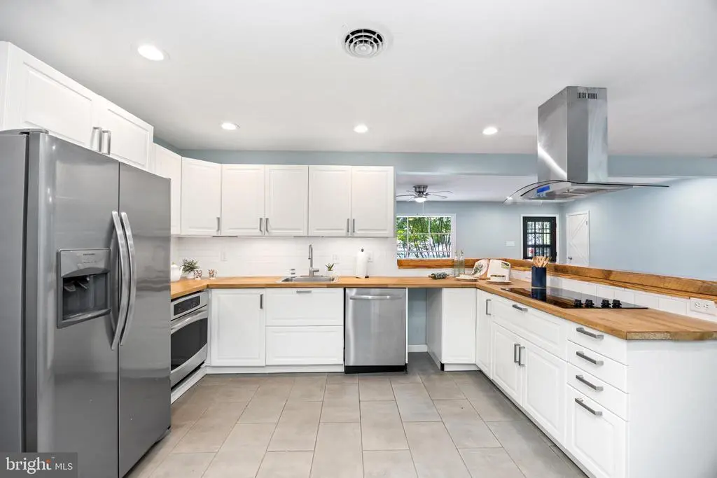 This 3-bed, 2-bath rancher with a 2 car garage sits tucked away on a semi-circular driveway and feels bright and welcoming from the moment you step inside. The living and dining areas are filled with natural light from the large front bay window, and the living room’s cozy fireplace makes the whole space feel relaxed and inviting. Double doors open from the dining area to an outdoor setup that’s easy to enjoy — a porch, deck, and patio area with an exterior fireplace perfect for cool evenings. The kitchen features butcher-block counters, plenty of cabinet space, and a layout that works well for both cooking and entertaining. Hardwood floors run through the main living areas, with tile in the kitchen and baths. The primary suite includes its own bath with a large tiled walk-in shower, while the main hall bath has a tub-shower combo. With its open feel, thoughtful layout, and great outdoor spaces, this home is airy, comfortable, and easy to love.
