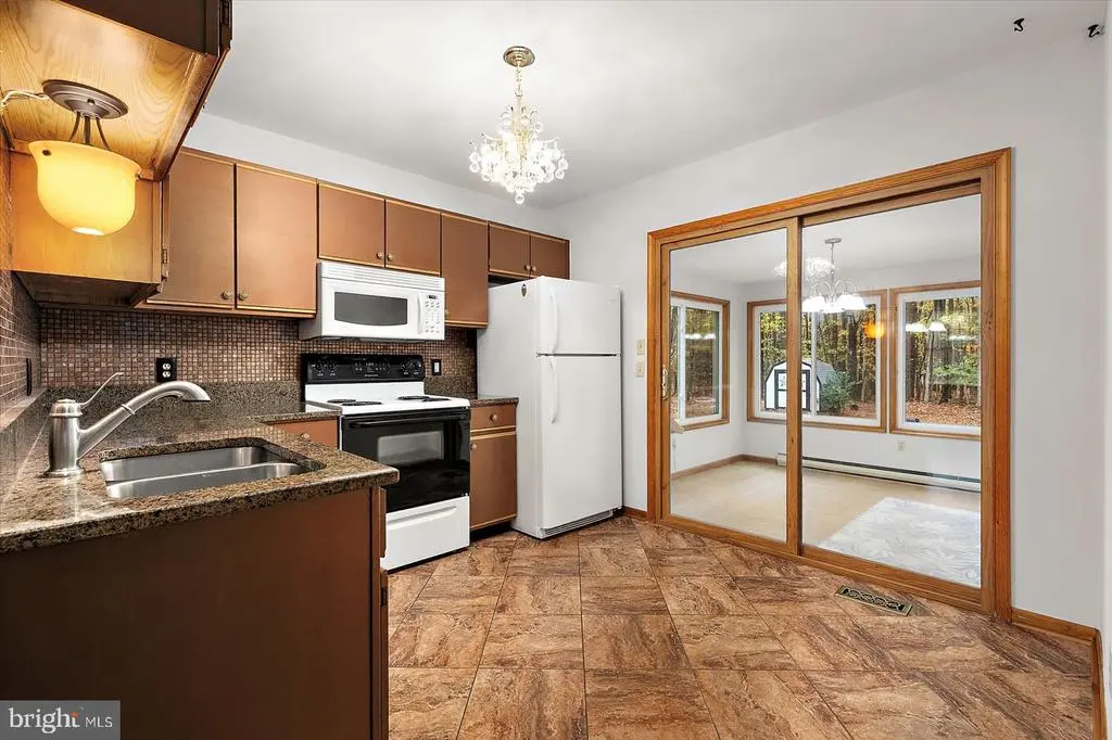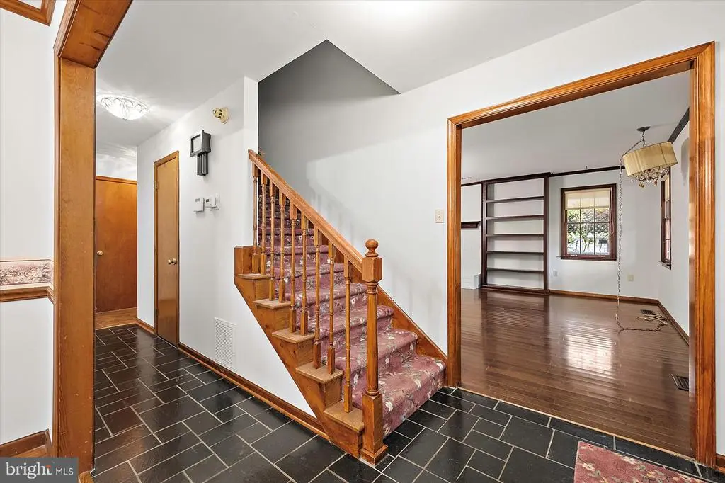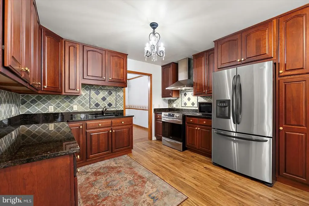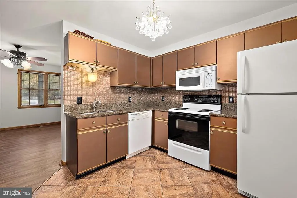 Sited on a .69 acre lot on a quiet street with no through traffic, this 2842 SF, 5 bedroom, 3 full bath, 2 half bath residence has a versatile floor plan well suited for multigenerational living, as well as for those who just want room to spread out. With wood flooring throughout, a masonry fireplace, and many rooms recently painted, the home is 'move in ready' and offers a spacious great room and dining room off the foyer, a powder room, and an updated eat-in kitchen w/ granite countertops that leads to a utility room w/ washer/dryer and beyond to the 'other side' of the home featuring a 2nd great room w/ separate front entrance, open kitchen, powder room, and a sunroom overlooking the tranquil back yard. Two separate staircases lead to the 2nd floor bedrooms and 3 full bathrooms. A third staircase leads to the floored attic with ample storage. The home also offers a 2-car garage, an inviting front porch, a rear deck, and a patio overlooking the private back yard with garden shed. Includes a one-year AHS 'Shield Complete' warranty ($840 value).